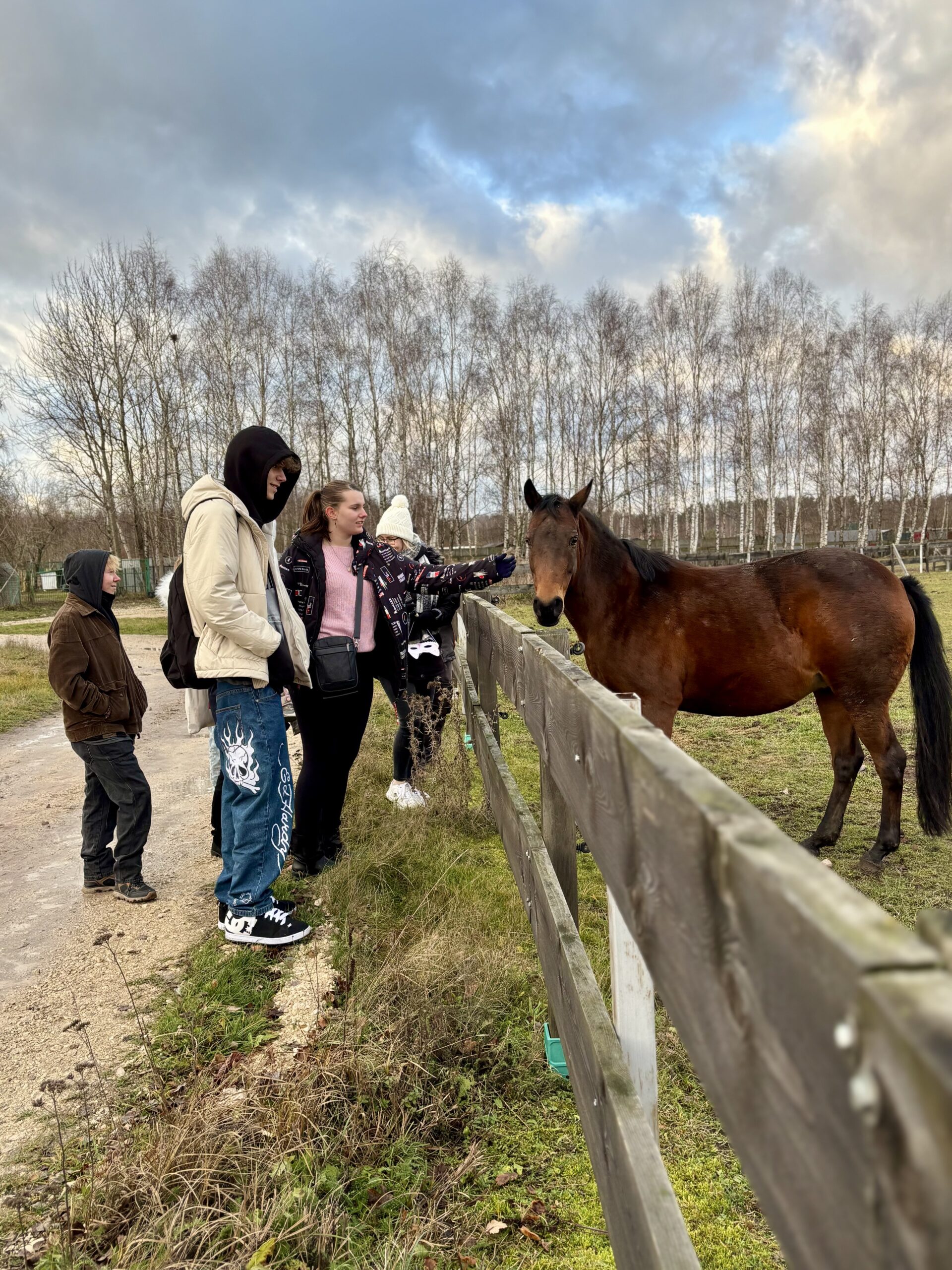 2. Oprowadzanie po schronisku (nasi goście zobaczyli: psią geriatrię, kociarnię, wybieg z końmi, zwierzęta gospodarskie)