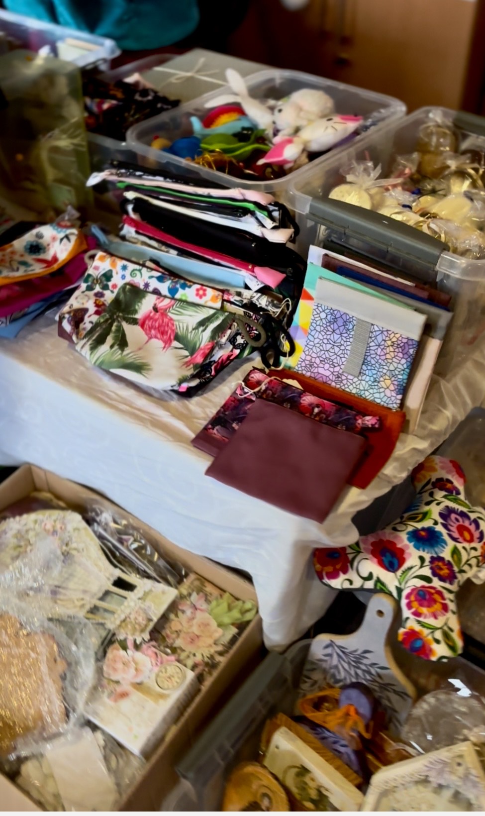 Przez całe wydarzenie można było zakupić świąteczne ozdoby i najróżniejsze akcesoria, a także pocztówki, gadżety, zdjęcia (również z naszymi podopiecznymi). Nasza prężnie działająca Manufaktura Korabki (zrzeszająca wolontariuszki tworzące rękodzieło w celu wsparcia finansowego schroniska) tworzy własnoręcznie przepiękne rzeczy, które każdy wielbiciel zwierząt powinien mieć u siebie! Ich niezwykłe i unikalne maskotki, poduszki, ozdoby świąteczne, dodatki do domu, akcesoria dla psów i kotów można znaleźć i zakupić: