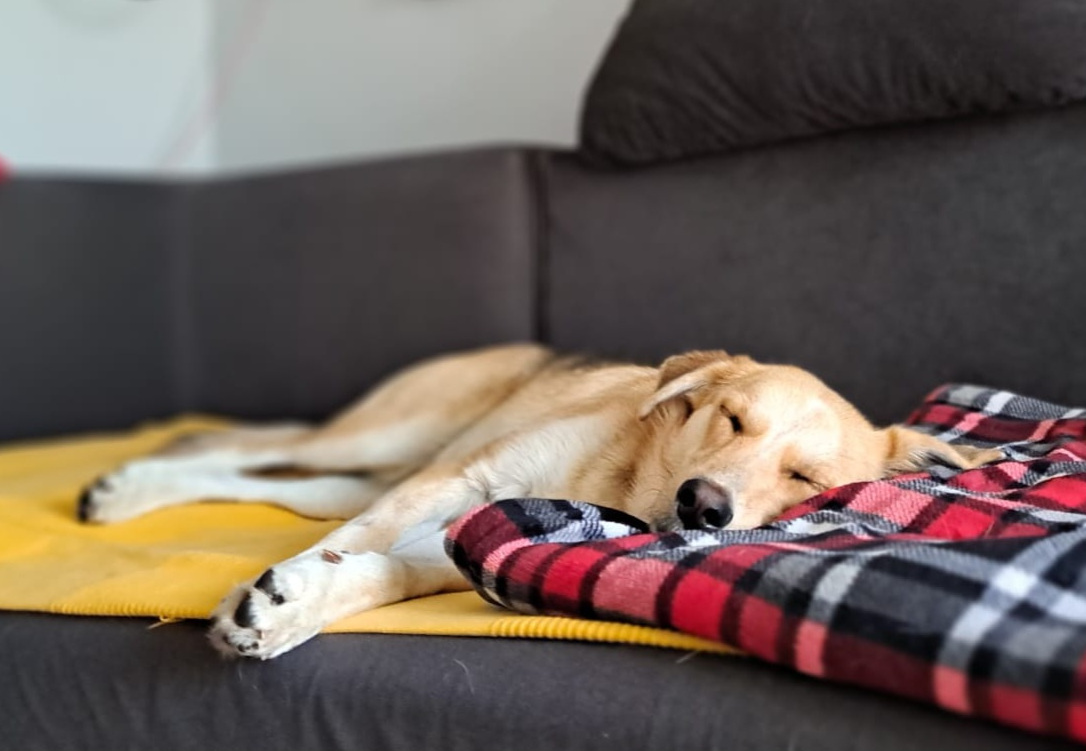 Małgorzata: Komancz: był bardzo ostrożny. Przez pierwsze dni spał w innym pomieszczeniu niż przebywaliśmy. Po kilku dniach zaczął przychodzić do nas na głaskanie. Na spacerach był bardzo niespokojny. Obszczekiwał psy (nawet z daleka), przy mijaniu próbował rzucać się na nie. Bardzo dużo spał.