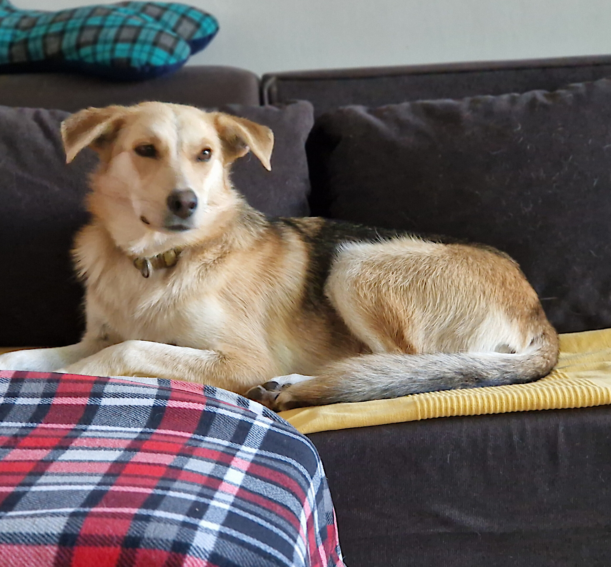 Nana: mimo że nas bardzo dobrze znała, po przywiezieniu jej do Warszawy była tak zestresowana, że nie sikała przez ponad 12 godzin. Na spacerach nie miała problemu z innymi psami. Bardzo dużo spała.