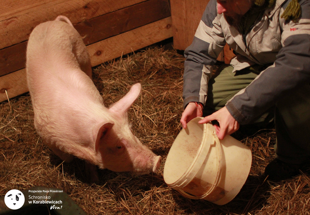 Świnkę można wesprzeć, przekazując jej takie dary jak marchew czy śruta. Zapraszamy do jej odwiedzin w Schronisku w Korabiewicach!:)