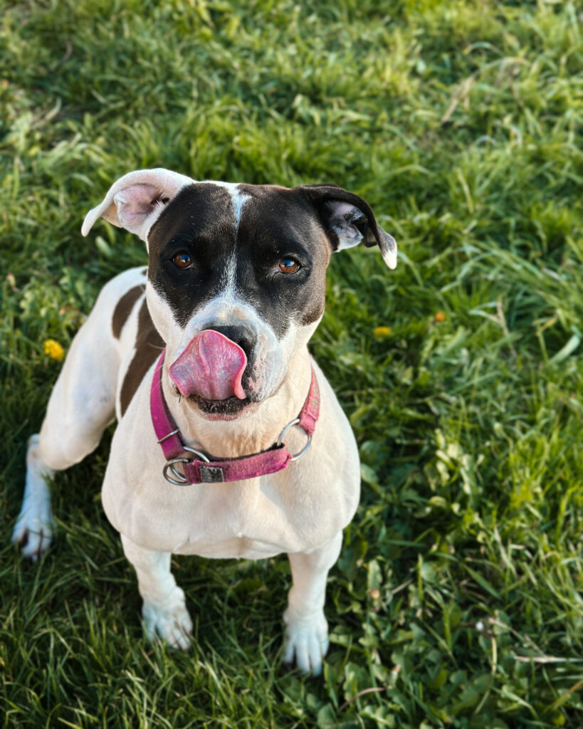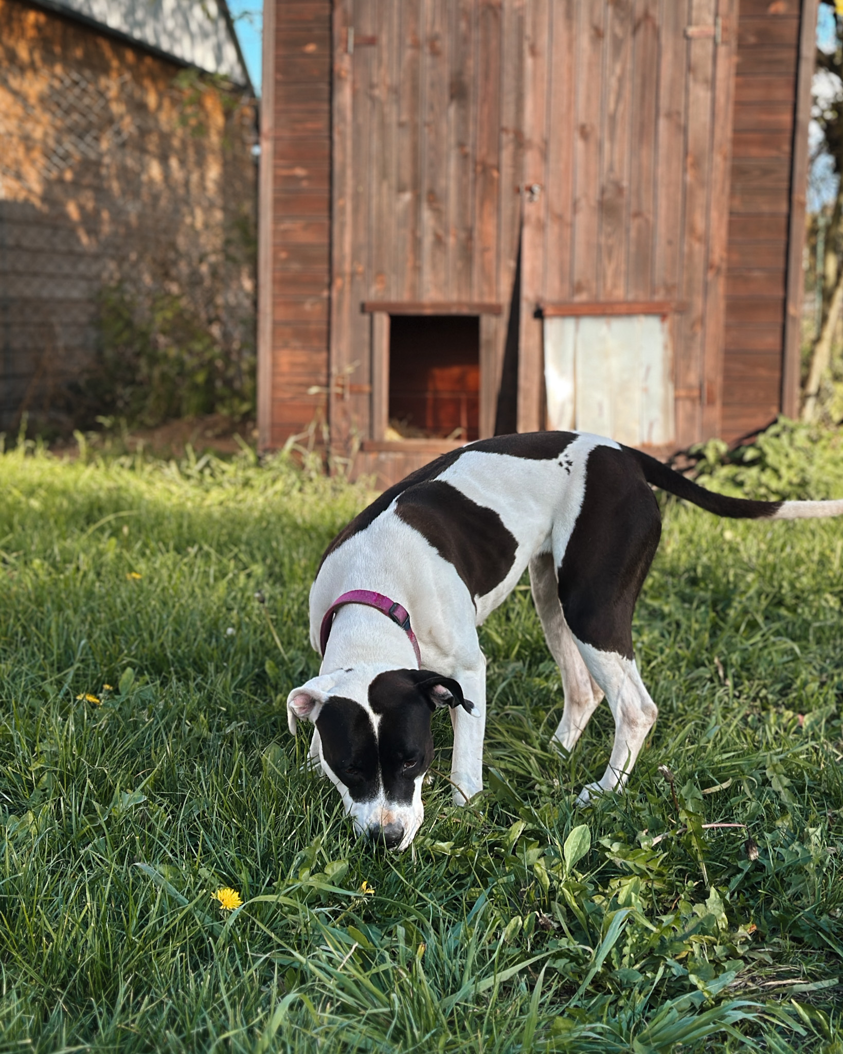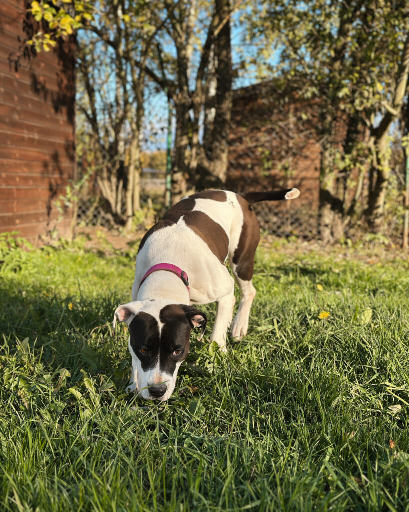 Ami uwielbia spacery – każde wyjście to dla niej ogromna radość. Uczy się radzić sobie z emocjami. Stała obecność opiekuna, regularne spacery i poczucie bezpieczeństwa pomogą jej w odzyskaniu równowagi emocjonalnej.