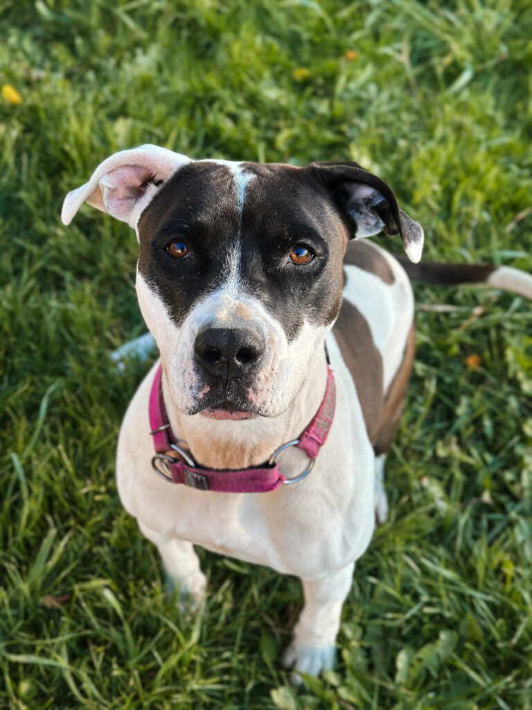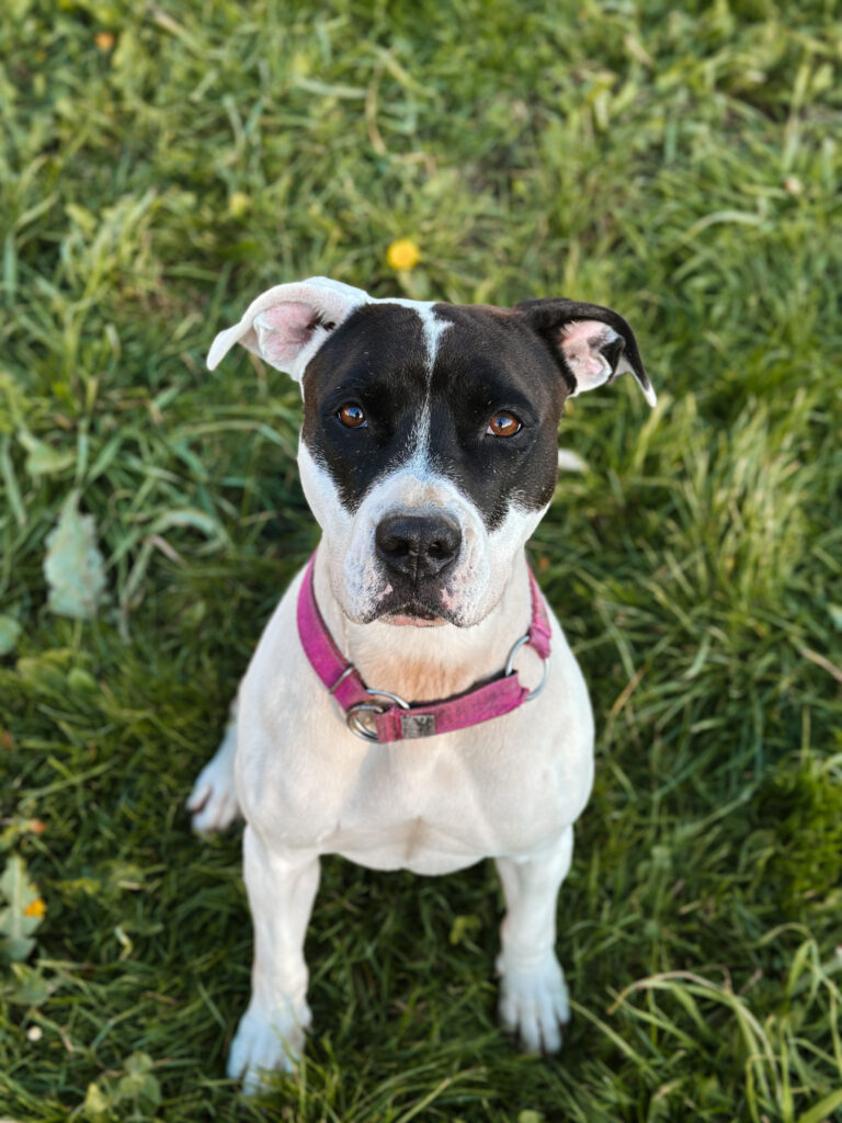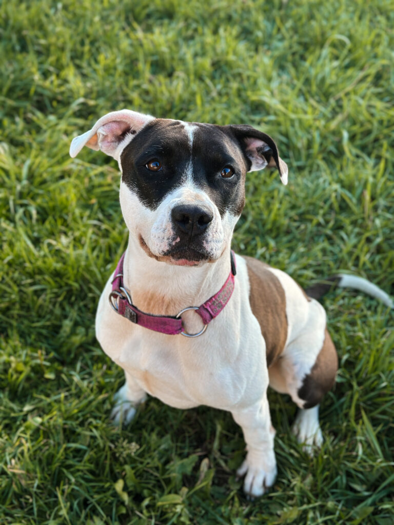 Ami to młoda suczka o urodzie i charakterze typowym dla psa w typie AST. Pochodzi prawdopodobnie z pseudohodowli. Trafiła do schroniska z przechowalni, zaniedbana fizycznie i psychicznie, jednak z dnia na dzień pokazuje, jak wielki potencjał w niej drzemie. Jest pełna energii, silna i sprytna, a przy odpowiednim wsparciu szybko się rozwija. W schronisku nie wykazała agresji wobec ludzi – przeciwnie, bardzo potrzebuje kontaktu z człowiekiem, którego w boksie ma zbyt mało.