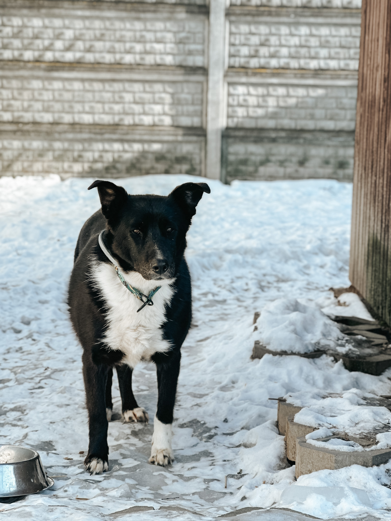 Aza to nieśmiała i spokojna sunia, która przyjechała do nas ze zbombardowanego schroniska na Ukrainie.