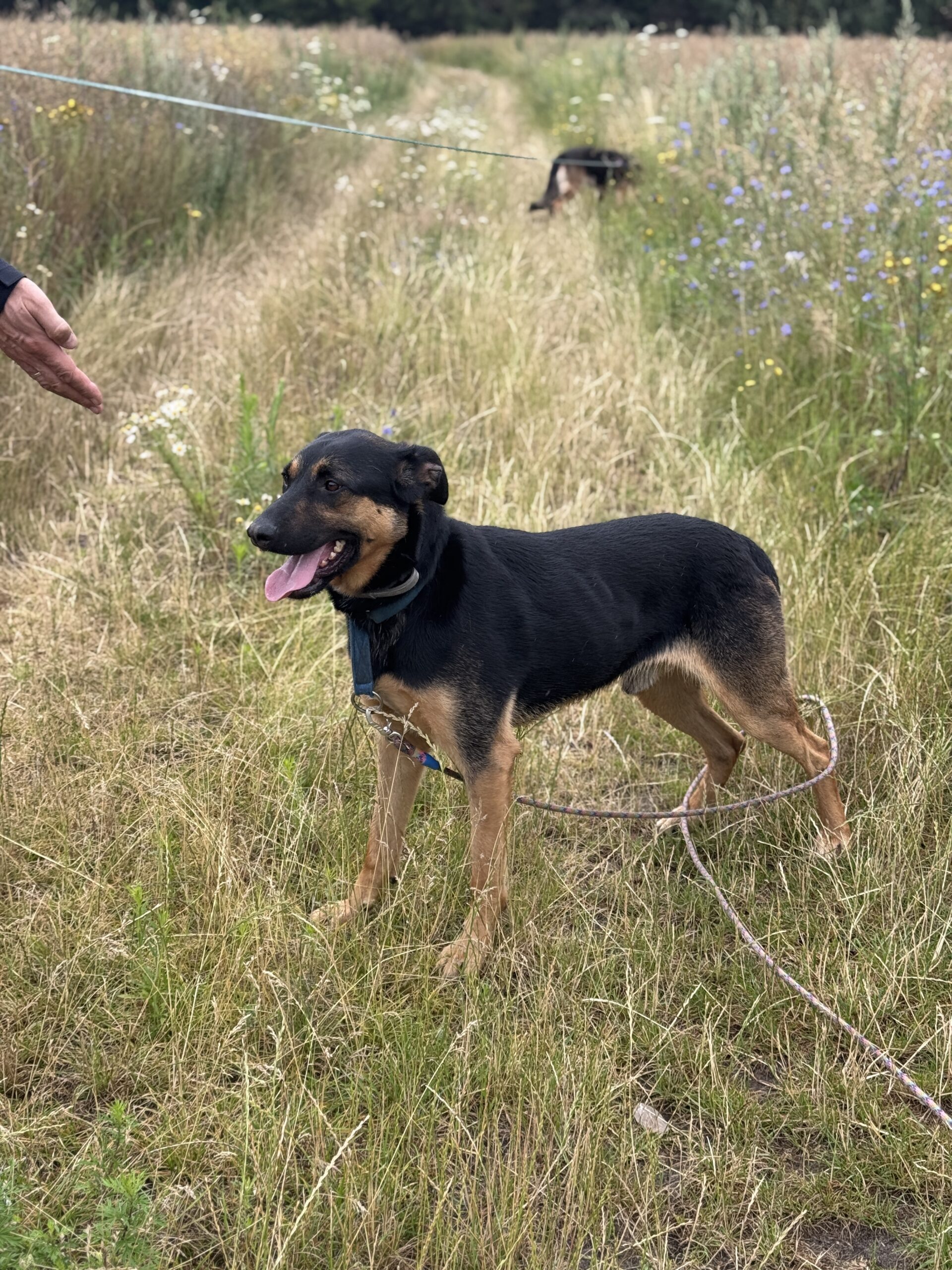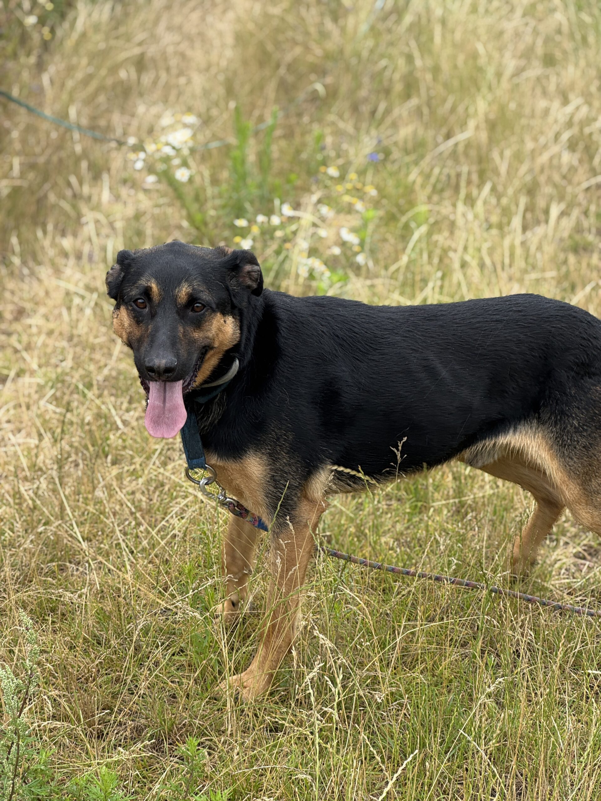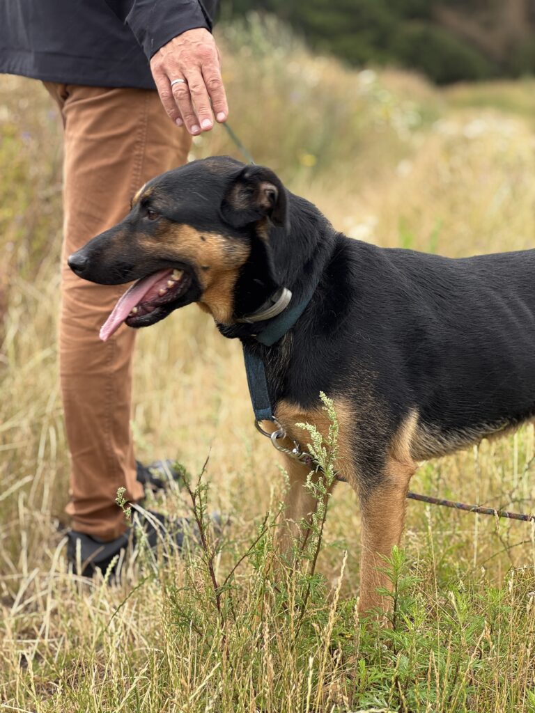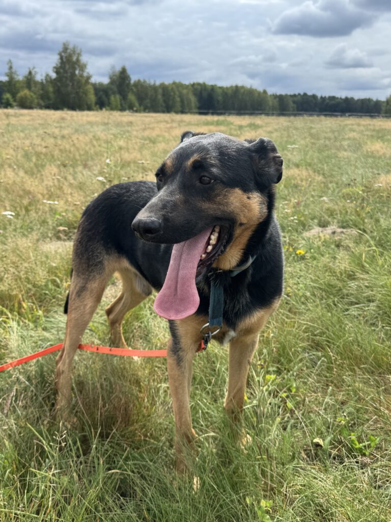 Jest jeszcze młody, więc ciągle uczy się zasad psiego savoir-vivre, ale bardzo lubi spotkania z innymi psami.