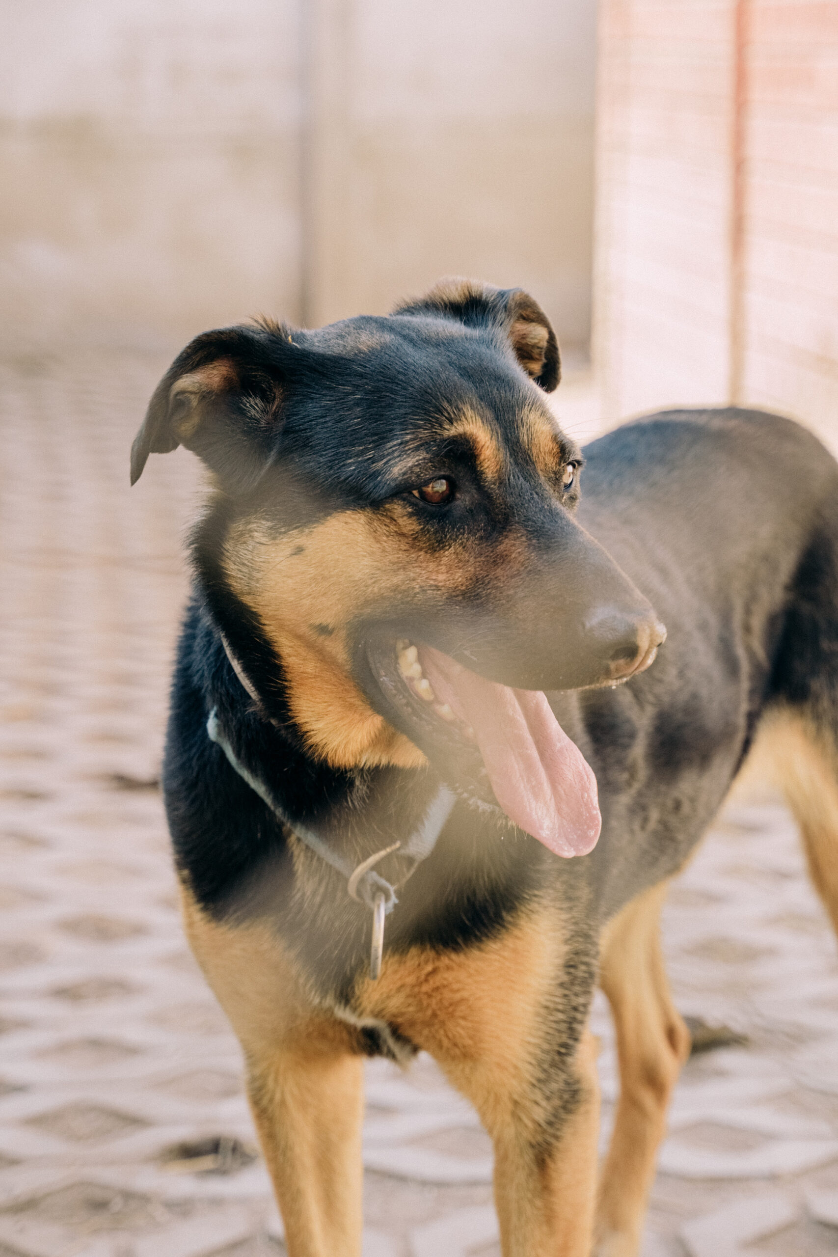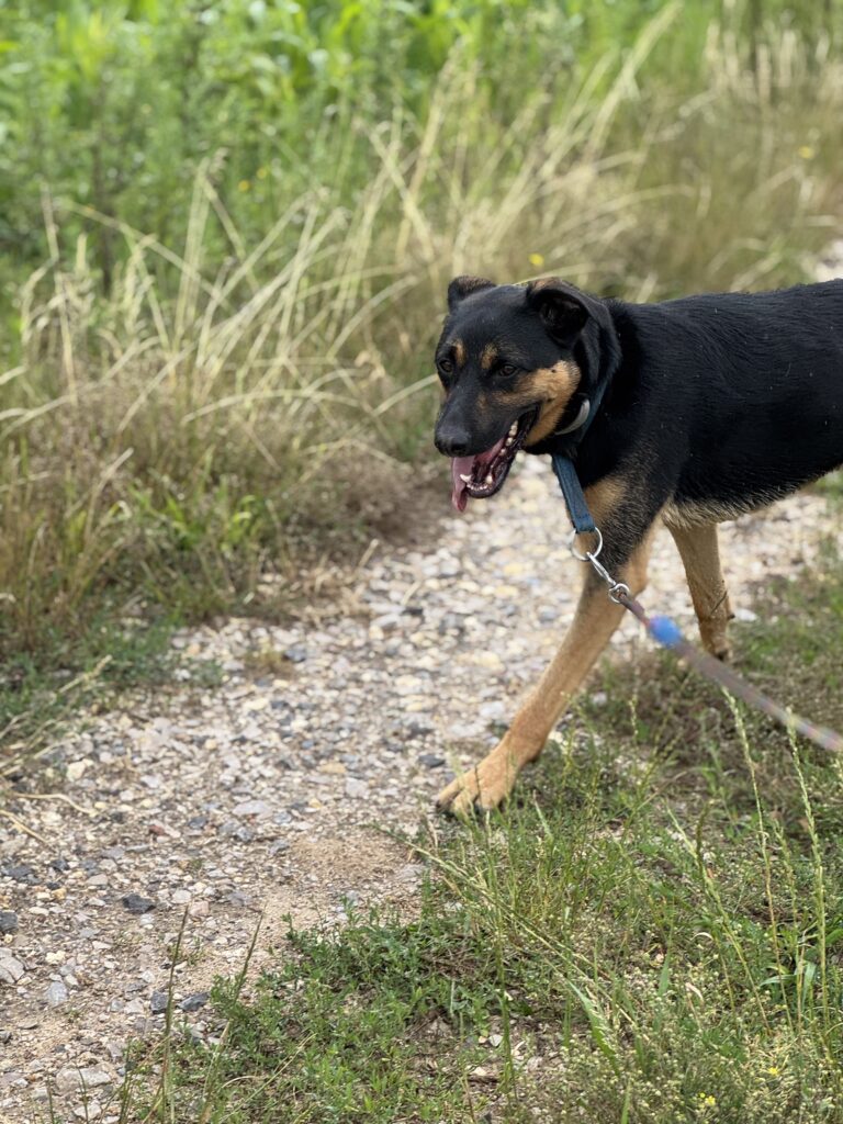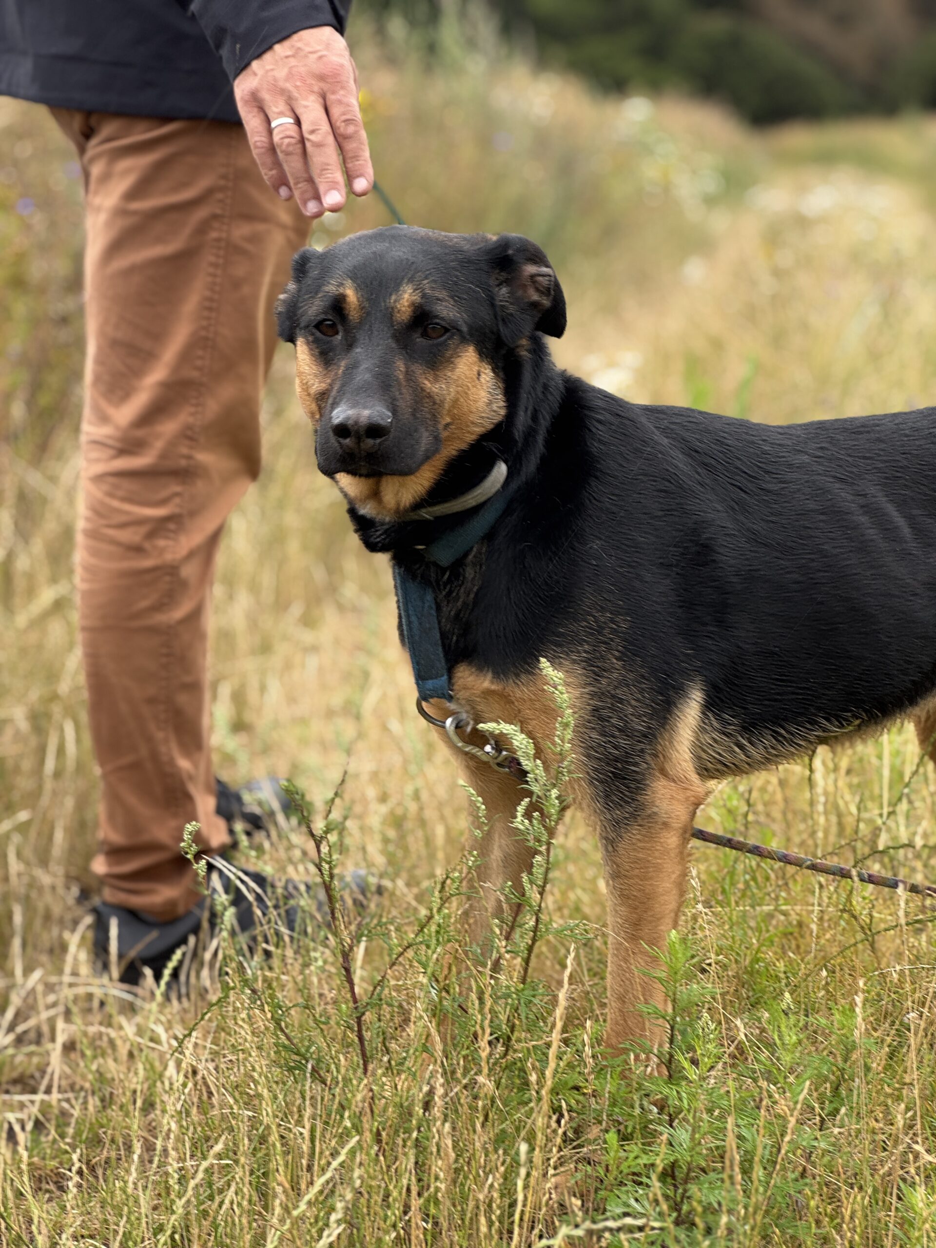 Jest jeszcze młody, więc ciągle uczy się zasad psiego savoir-vivre, ale bardzo lubi spotkania z innymi psami.