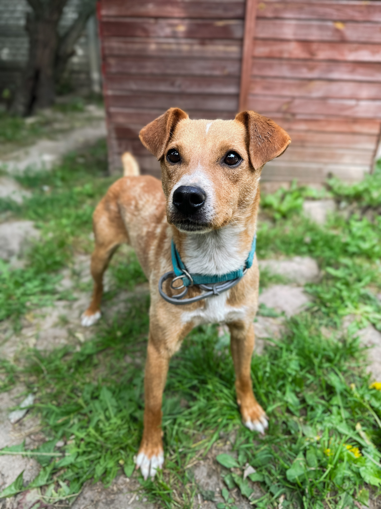 Bruno to delikatny, łagodny piesek, który stracił dom i trafił za kraty. To wesoły maluch z wiecznie uśmiechniętym pyszczkiem i ogromnym sercem. Bruno bardzo tęskni za bliskością człowieka – każdy gest, każda chwila uwagi jest dla niego prawdziwym skarbem. Uwielbia spacery, wspólne zabawy i przytulanie. Ufnie przygląda się człowiekowi, ma łagodne spojrzenie.