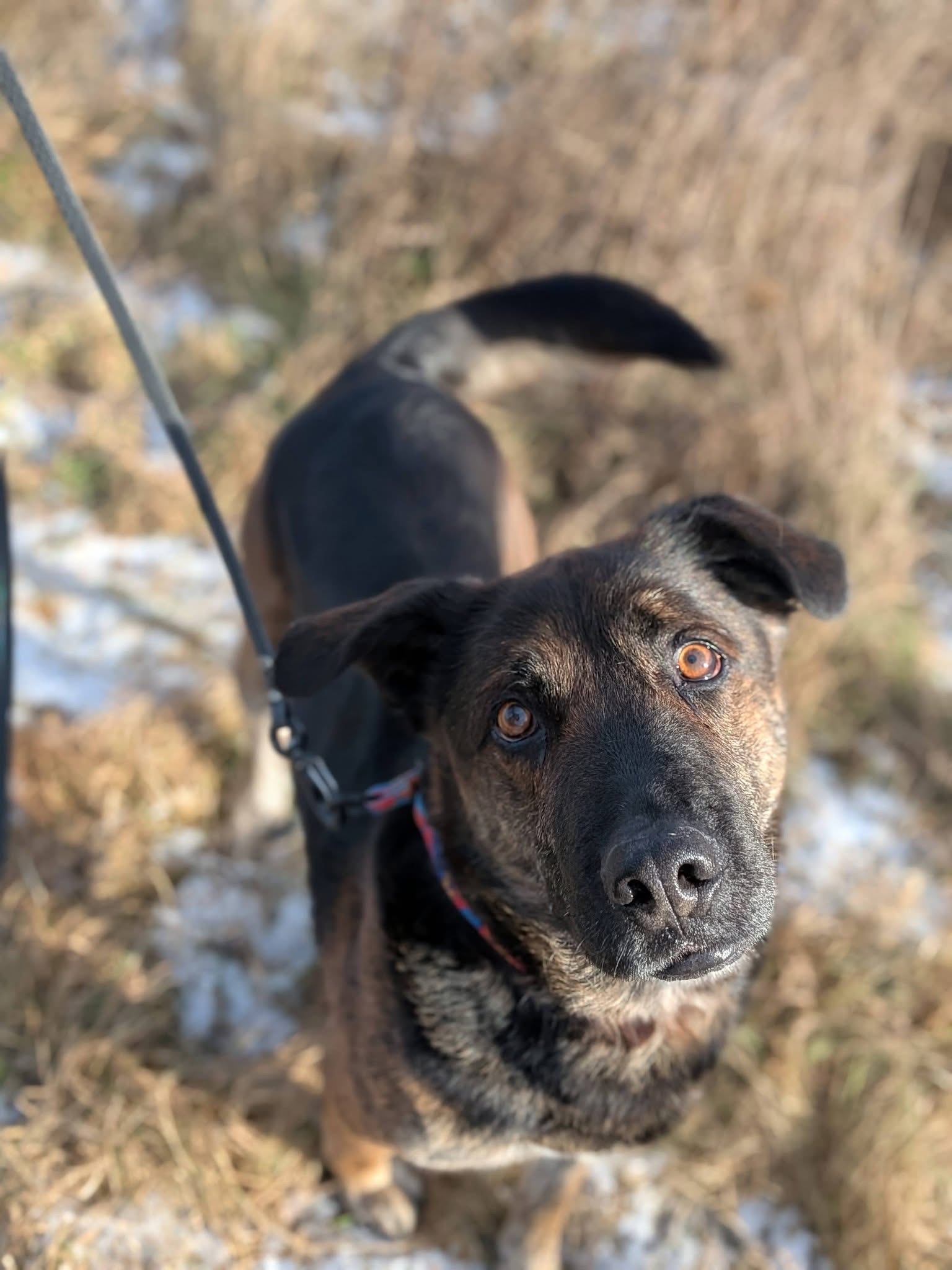 Carl jest psem średniej wielkości – raczej większy, niż mniejszy. Ładnie chodzi na lince. W emocjach potrafi skoczyć na człowieka, więc na spacerze potrzebuje spokoju i wyciszenia. Poza tym, to bardzo miły psiak. Na napotkane na spacerze psy nie reaguje, spokojnie je mija.