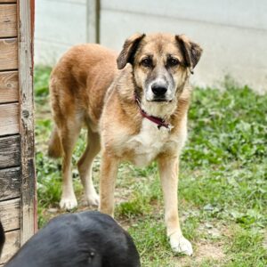 Porzucony, smutny, nie mógł się odnaleźć w schroniskowych warunkach… ale Chrupek powolutku się otwiera. Na widok znajomego sobie człowieka cieszy się i prosi o pieszczoty.