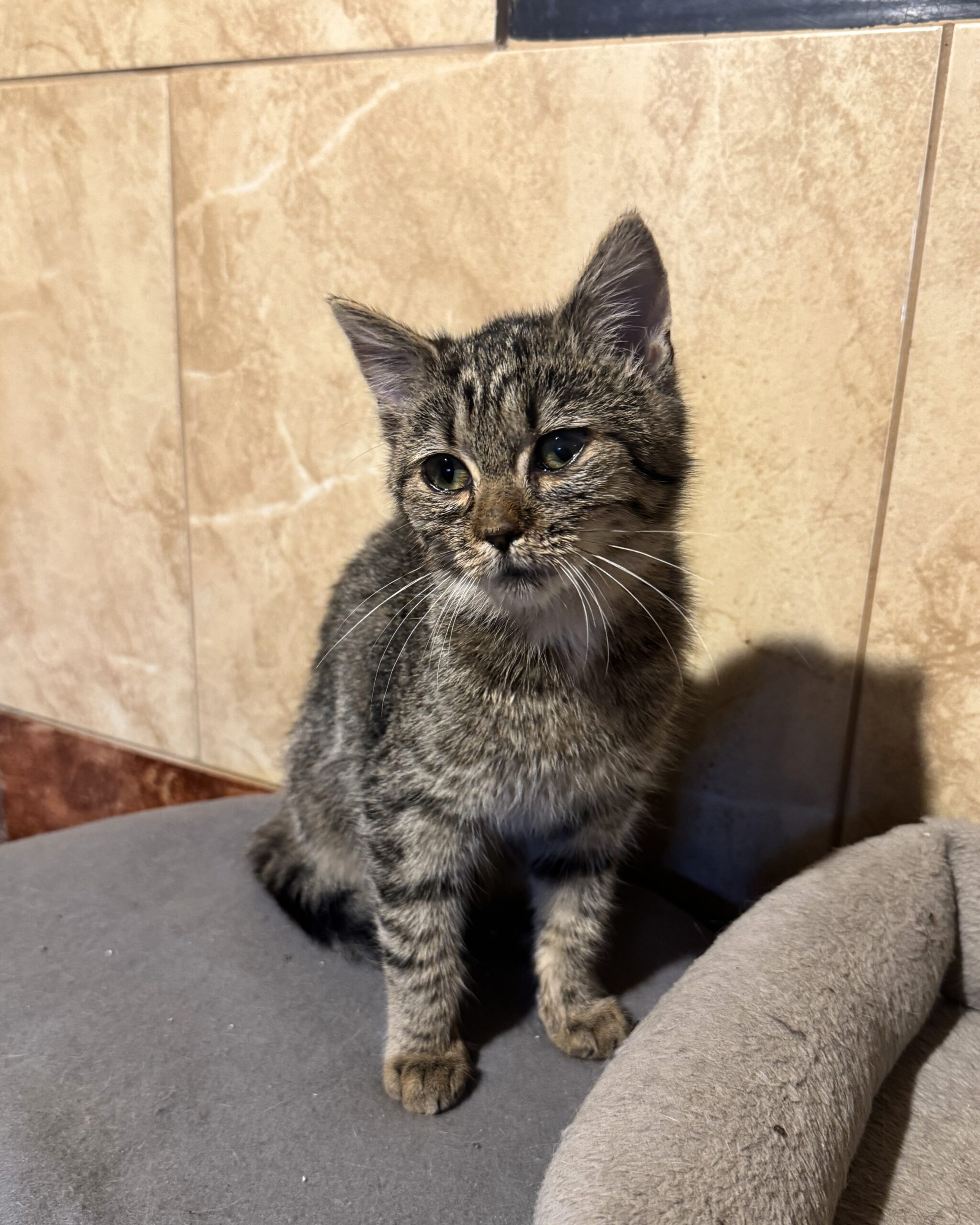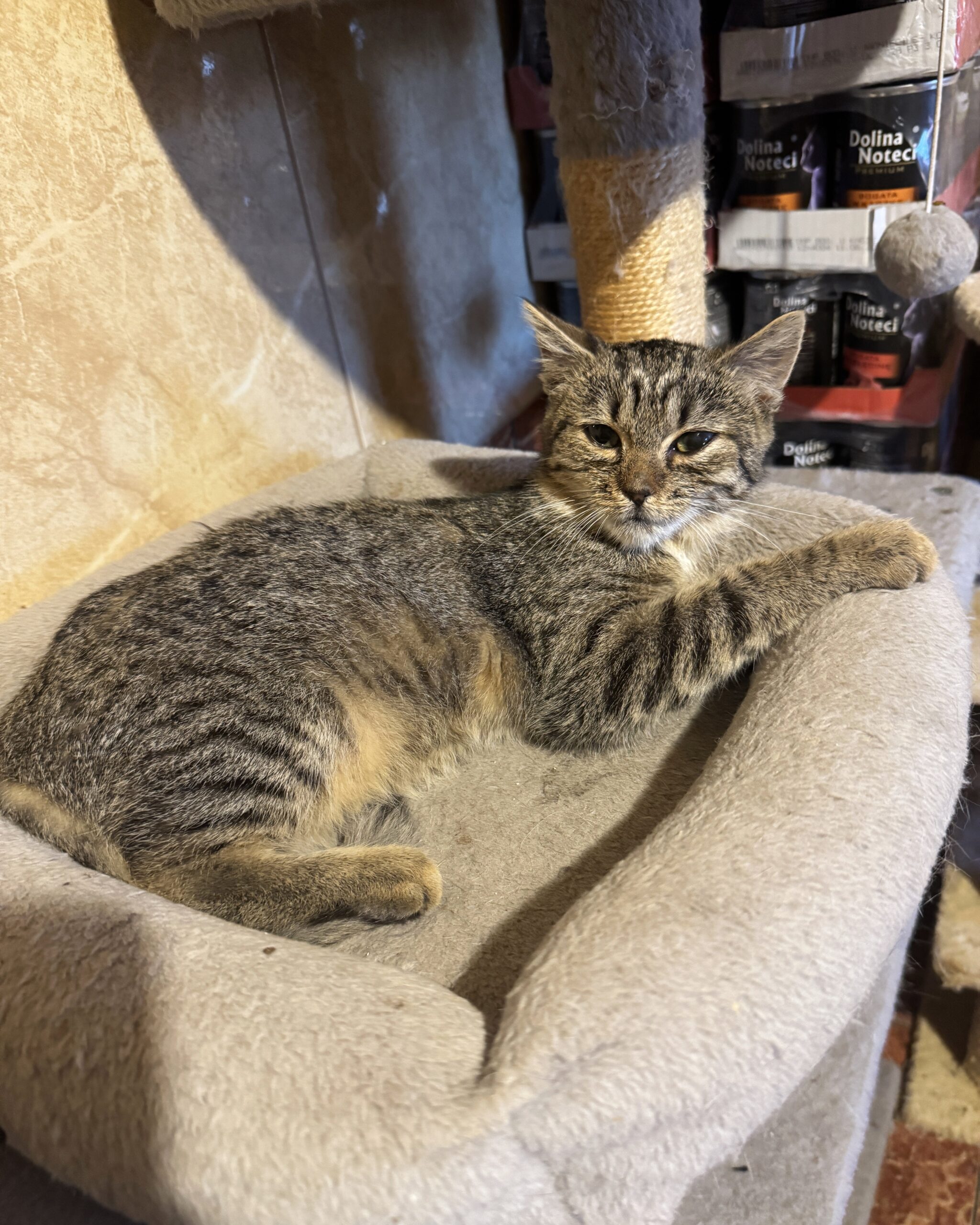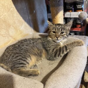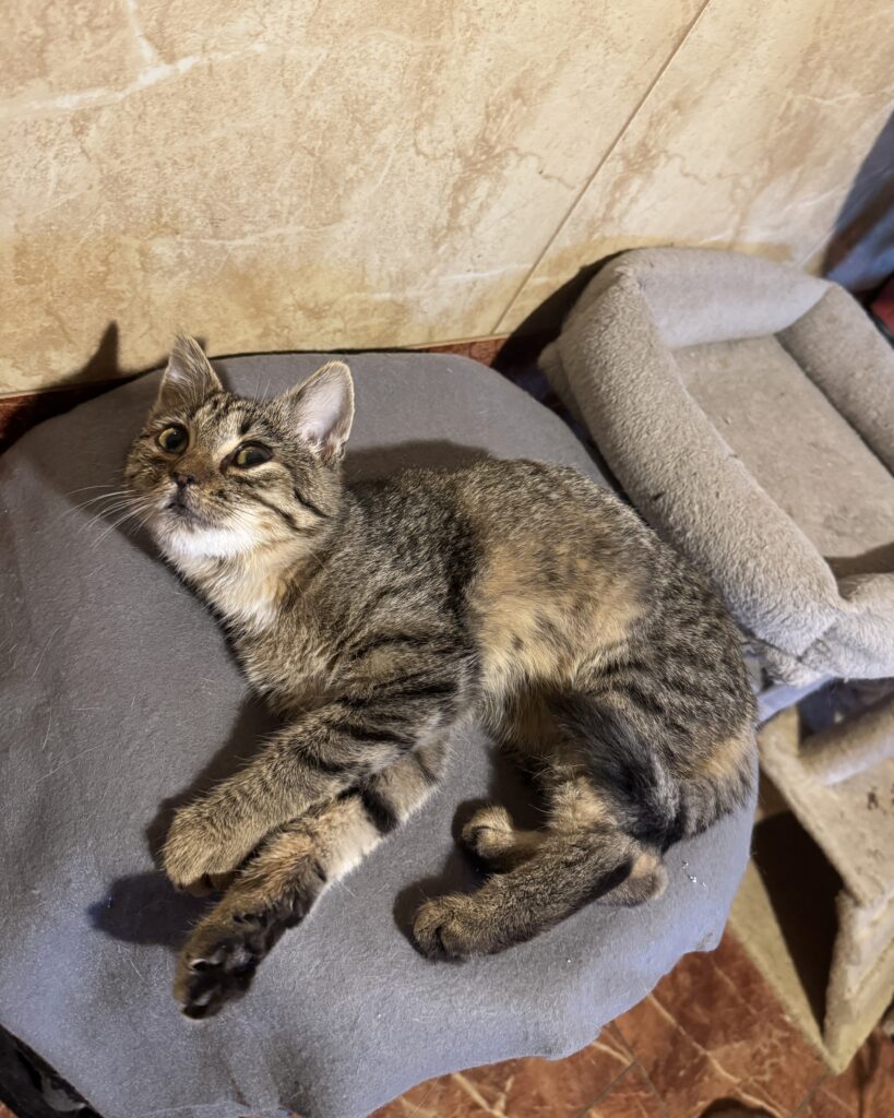 Urodziła się ok. 06.2025r. Lubi głaskanie i zabawę. Bywa trochę nieśmiała i wycofana, ale kiedy kogoś pozna tuli się i mruczy.
