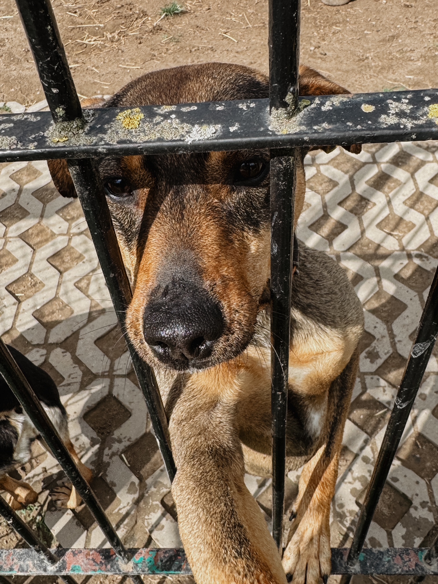 Dogaduje się z innymi psami. Dzieli boks z równie aktywną suczką.