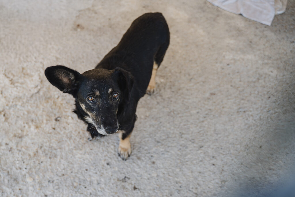 Dymka jeden z 9 psów odebranych interwencyjnie przez Animal Support i Fundacja VIVA! Psy przebywały na posesji, gdzie często pozostawały bez opieki przez dłuższy czas, bez jedzenia, wody i schronienia (na posesji były 2 rozpadające się budy…). Cierpiały z głodu, zimna i chorób. Ich życie w tamtym miejscu było koszmarem – rany, wyłysienia, zapchlenie i złamane zęby to tylko niektóre z oznak zaniedbań. Dodatkowo, słabsze psy były atakowane przez silniejsze…