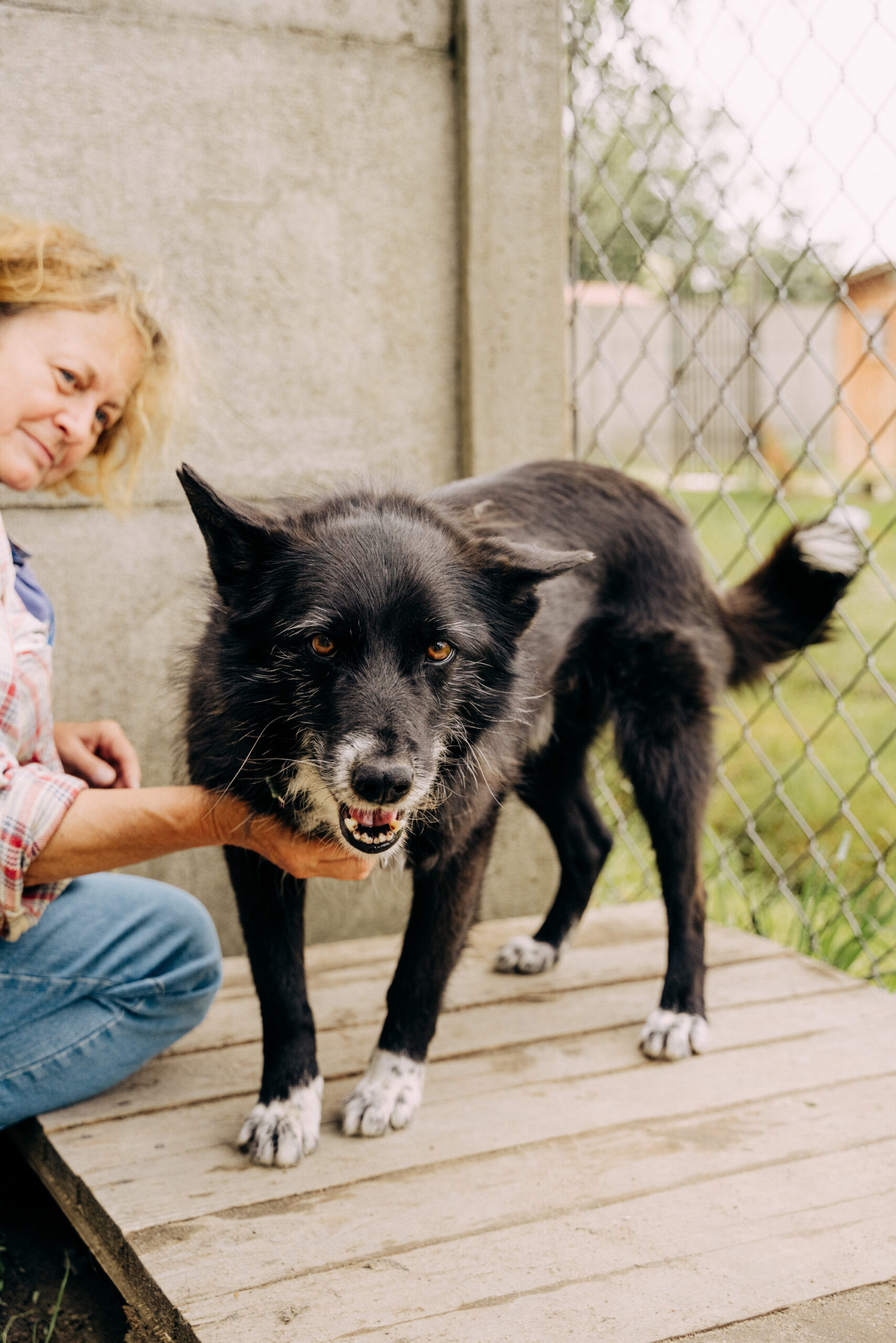 W schronisku jest socjalizowany i uczy się komunikacji z psami, jednakże ten obszar będzie wymagał dopracowania poza schroniskiem, np. poprzez kontakty z psami stabilnymi, potrafiącymi się komunikować.