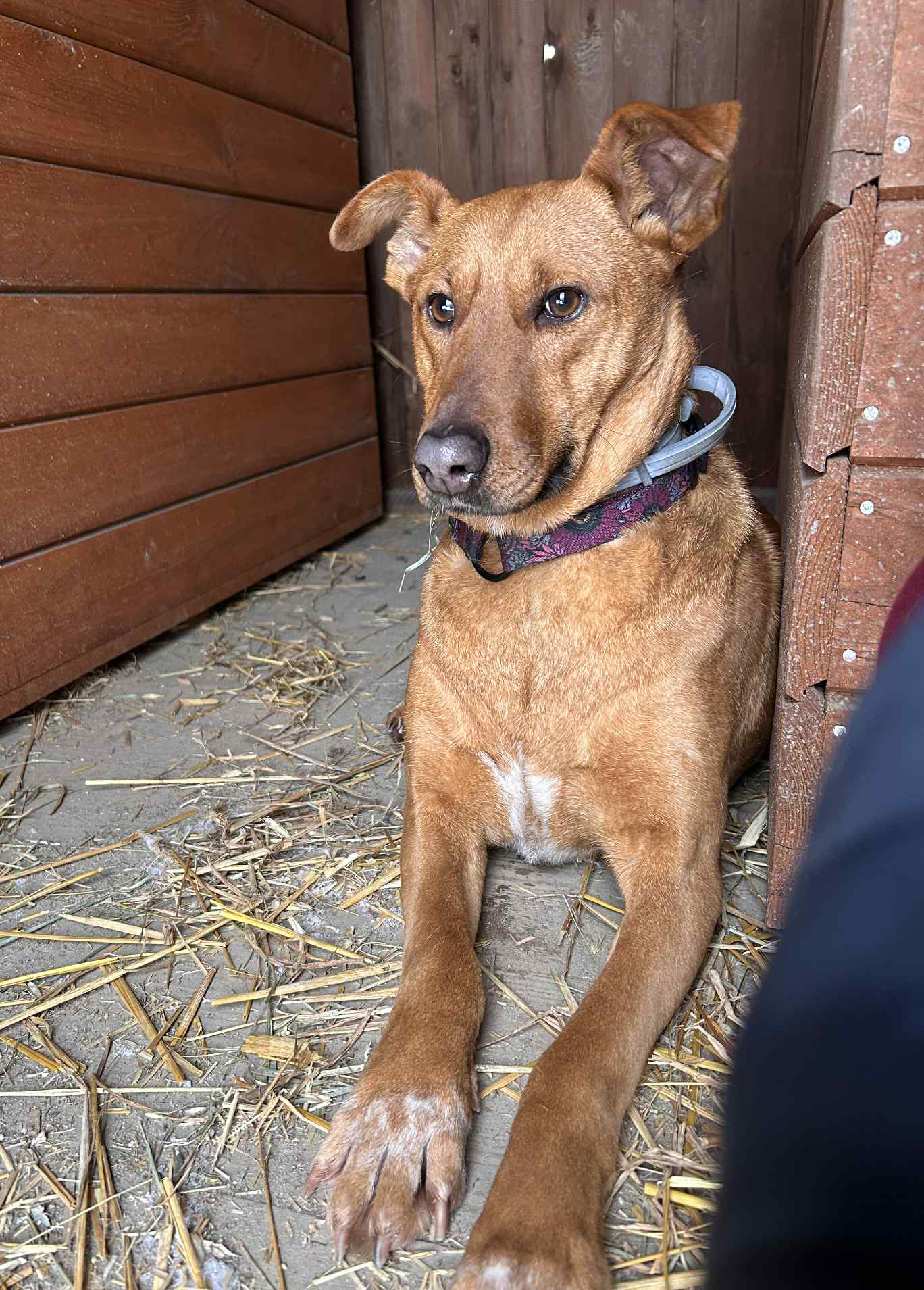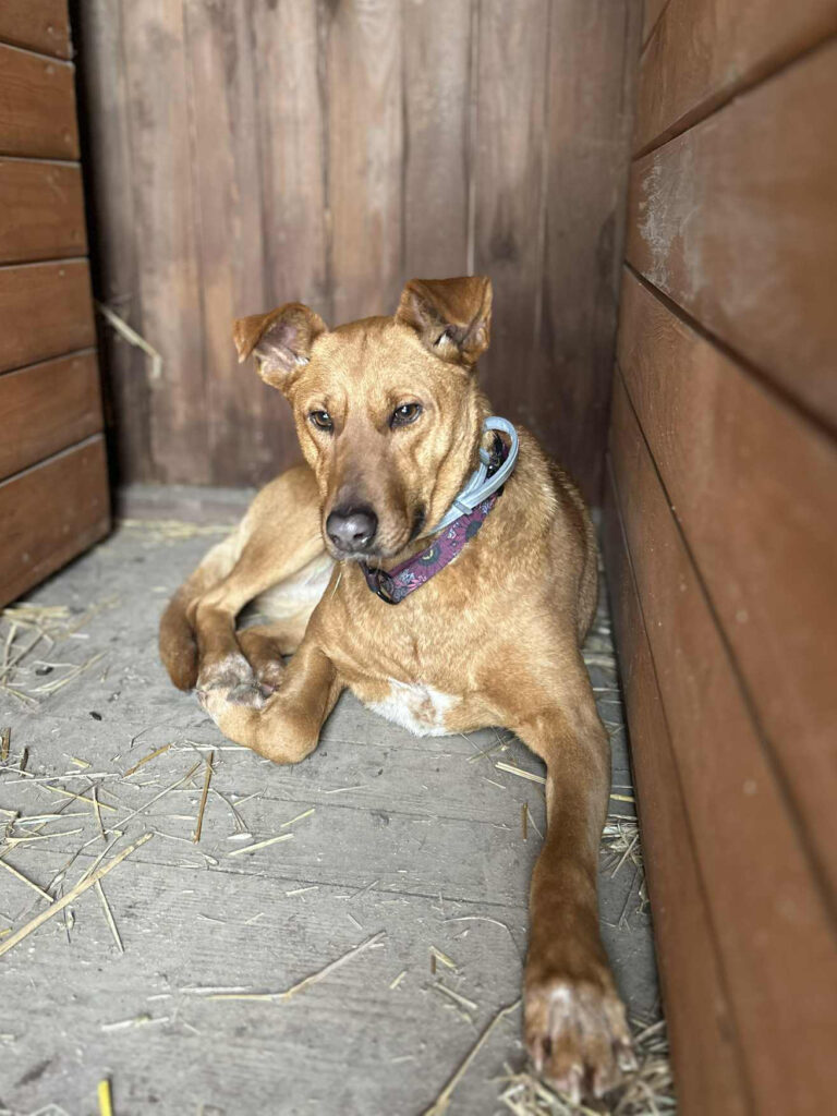 Eklerka to nieśmiała, delikatna suczka, która jednocześnie pragnie dotyku człowieka, ale się go boi. Kilka miesięcy spędziła na łańcuchu, kolejne prawie 2 lata w kojcu. Budka wypełniona szmatami, stary, pogryziony fotel i garnek rozgotowanej kaszy z chlebem.