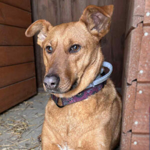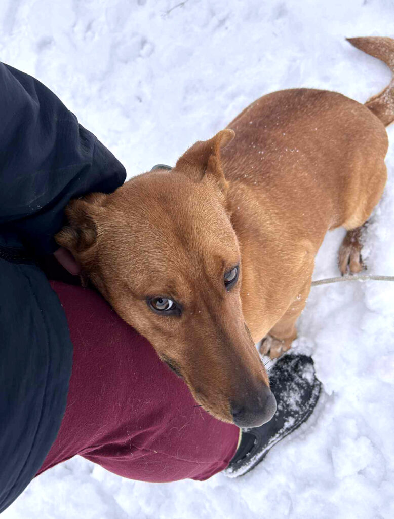Jest nowa w schronisku, obecnie hałasy bardzo ją przytłaczają. Oparcia w tej sytuacji, szuka w człowieku. Pomimo lęku, przy spokojnym, delikatnym podejściu, daje sobie zapiąć smycz. Nad tematem spacerów Eklerka będzie dzielnie pracować w nadchodzących tygodniach.