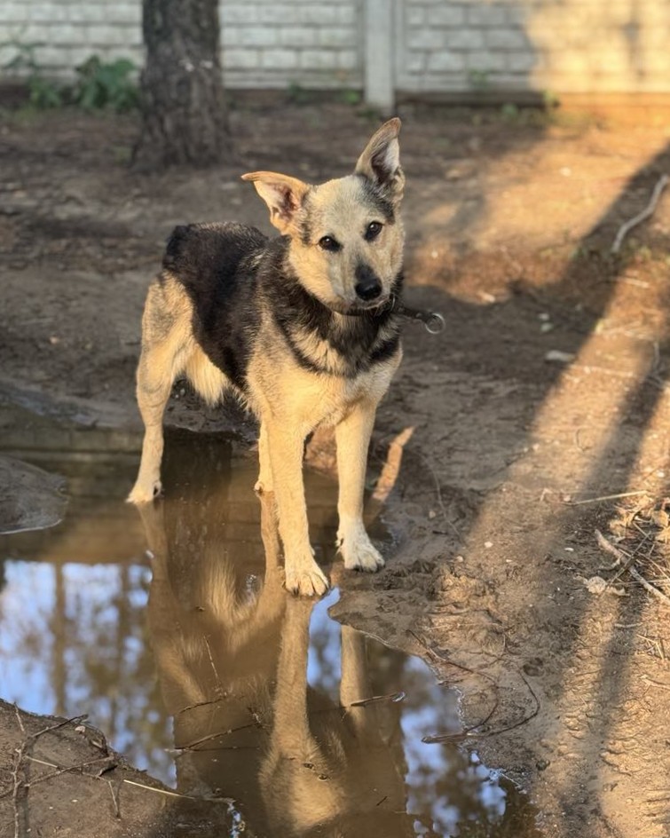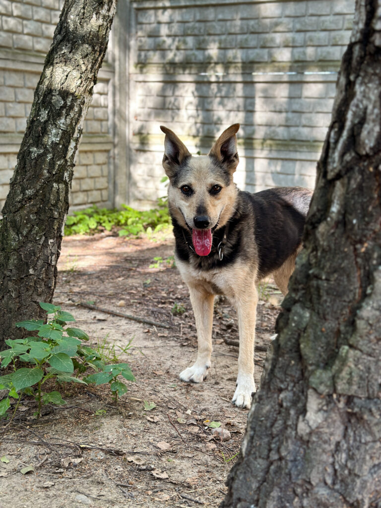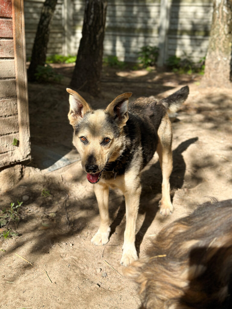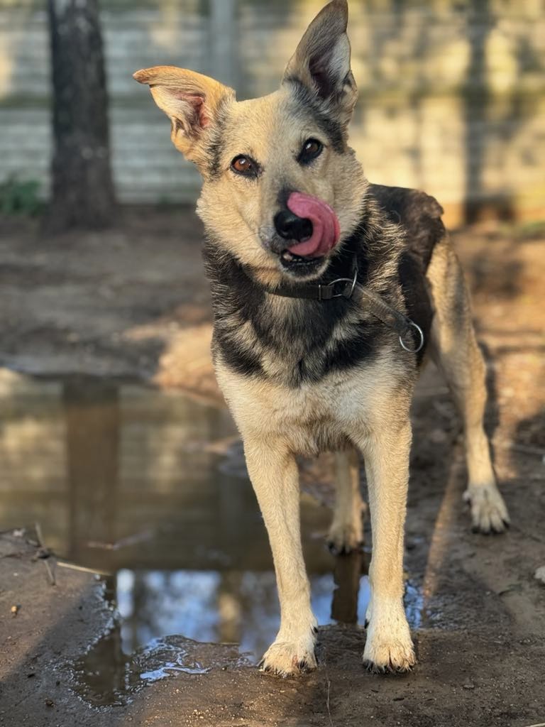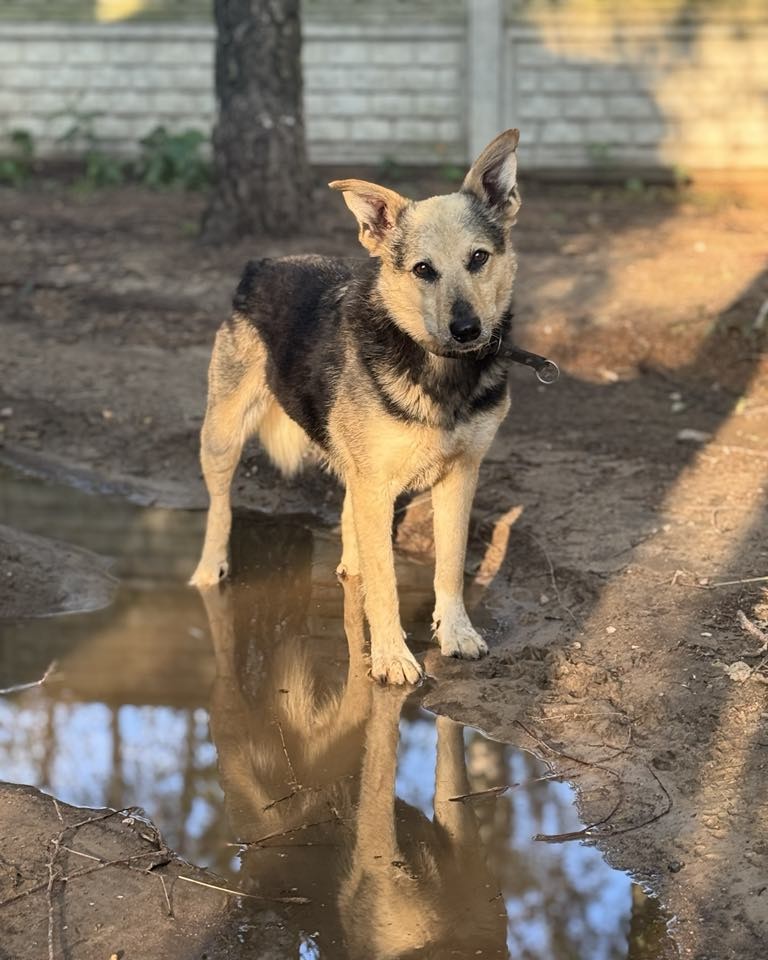 Ella jest uroczą średniej wielkości, delikatną i wrażliwą sunią. Grzeczna, nieśmiała, troszkę wycofana, ale pięknie chodzi na lince, podąża za opiekunem, nie ciągnie. Boi się innych psów ale nie panikuje, raczej wycofuje się, dając opiekunowi sygnał, że nie chce kontaktu.