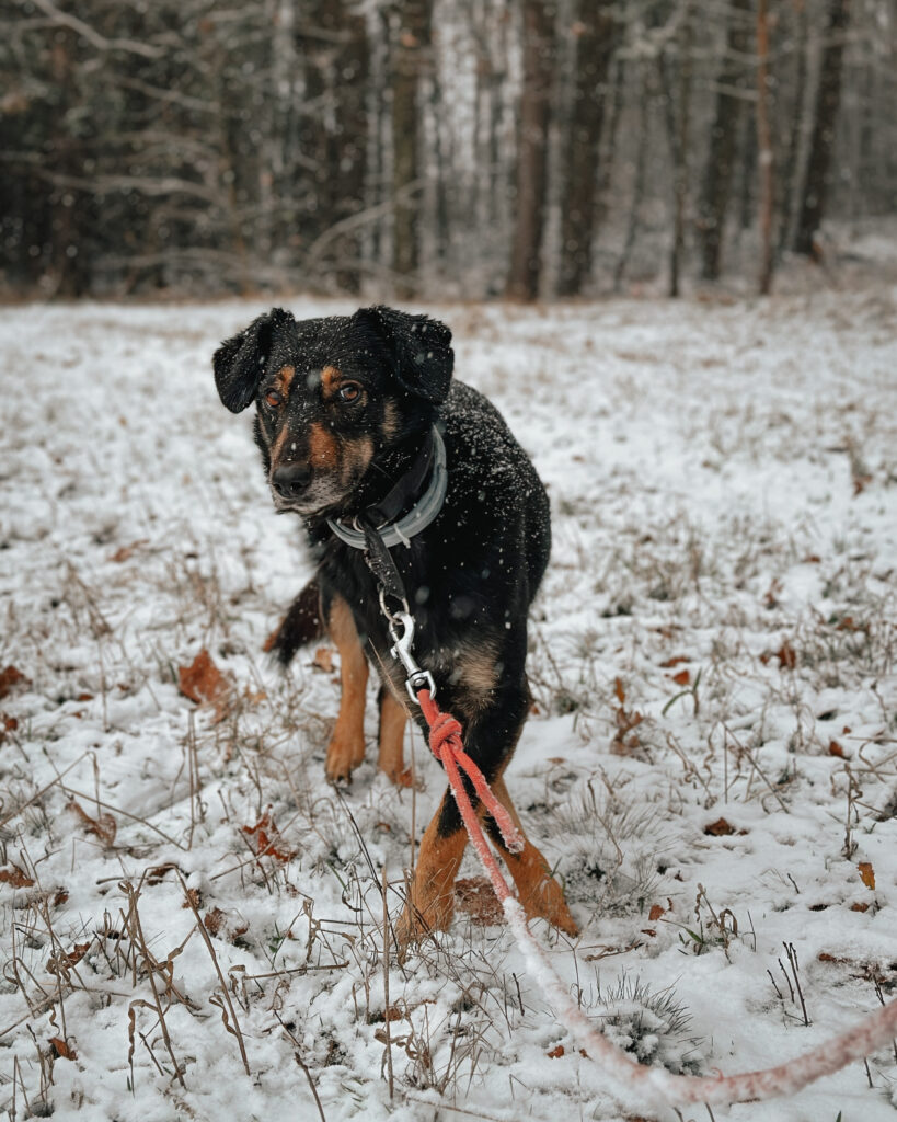 Falco jest średniej wielkości psem, waży 12kg. Urodził się prawdopodobnie w styczniu 2020r.