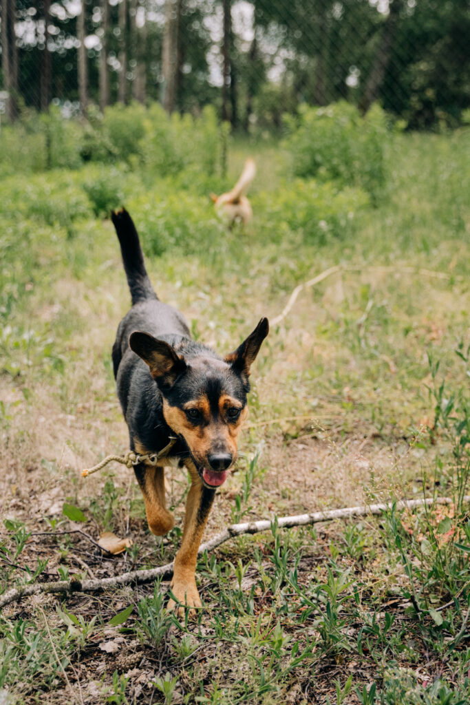 Gatsby to prawie dwuletni z domieszką ras myśliwskich. Z racji jego predyspozycji, potrzebuje dużo ruchu i stymulacji umysłowej. Jest w nim wręcz szczenięca radość, która daje się poznać od momentu wyjścia poza boks – każde pożegnanie po spacerze łamie serce, bo patrzy za człowiekiem dopóki ten nie zniknie z pola widzenia.