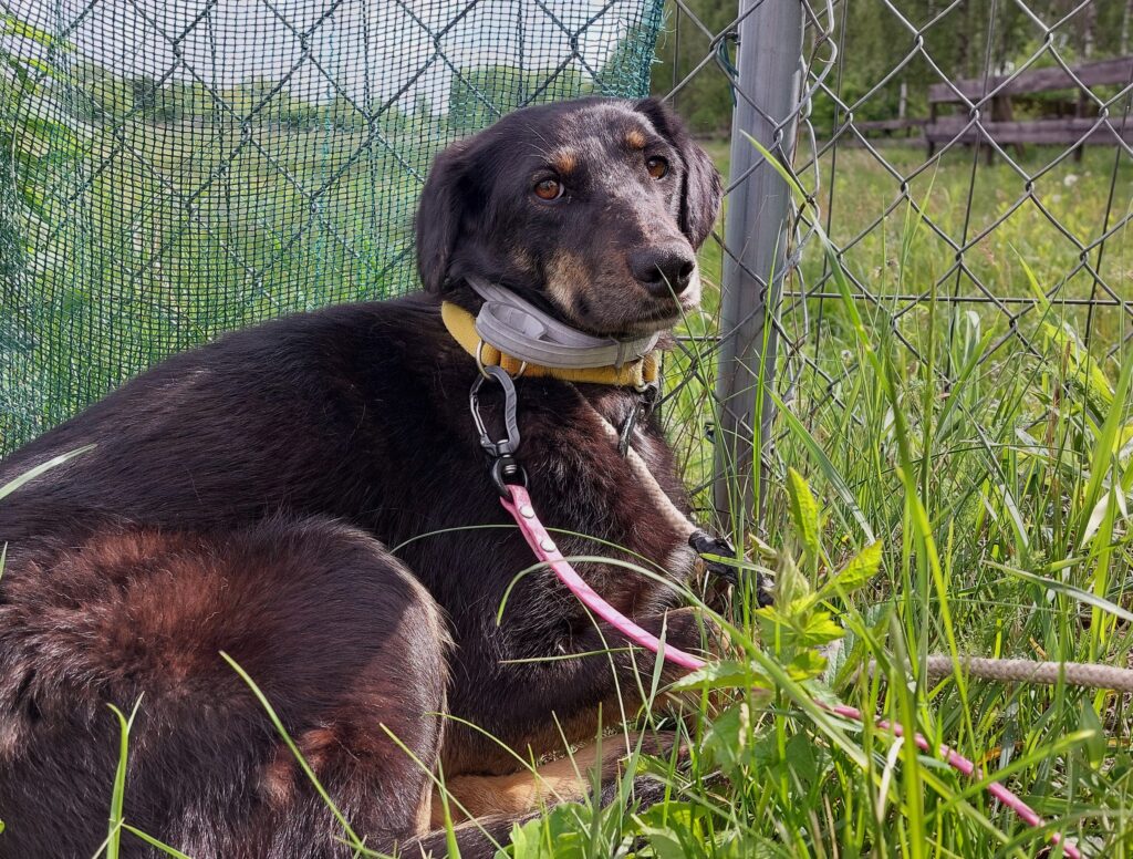 Do schroniska w Korabiewicach trafiła po pożarze gospodarstwa w Grodzisku Mazowieckim, w którym zginął jej opiekun. Została odłowiona razem z kilkunastoma innymi psami. Na wpół dzika, do niedawna była psem wolnożyjącym. Urodziła się i wychowała na wolności.