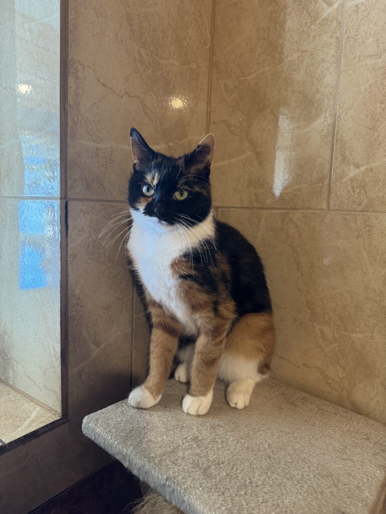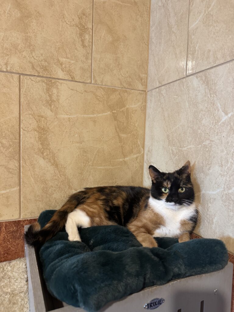 Izyda to młoda koteczka, która trafiła do nas z gromadką kociąt. Jest przyjazna, lubi towarzystwo człowieka, aczkolwiek ma swoje humory i jest kotką z wyrazistym charakterem.