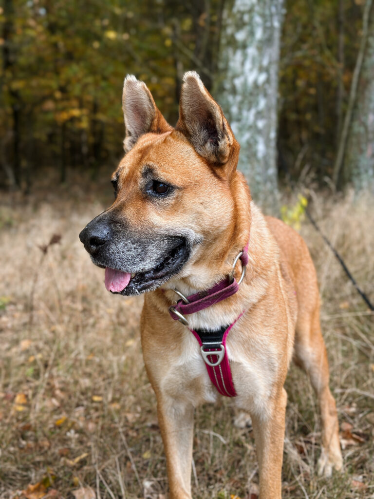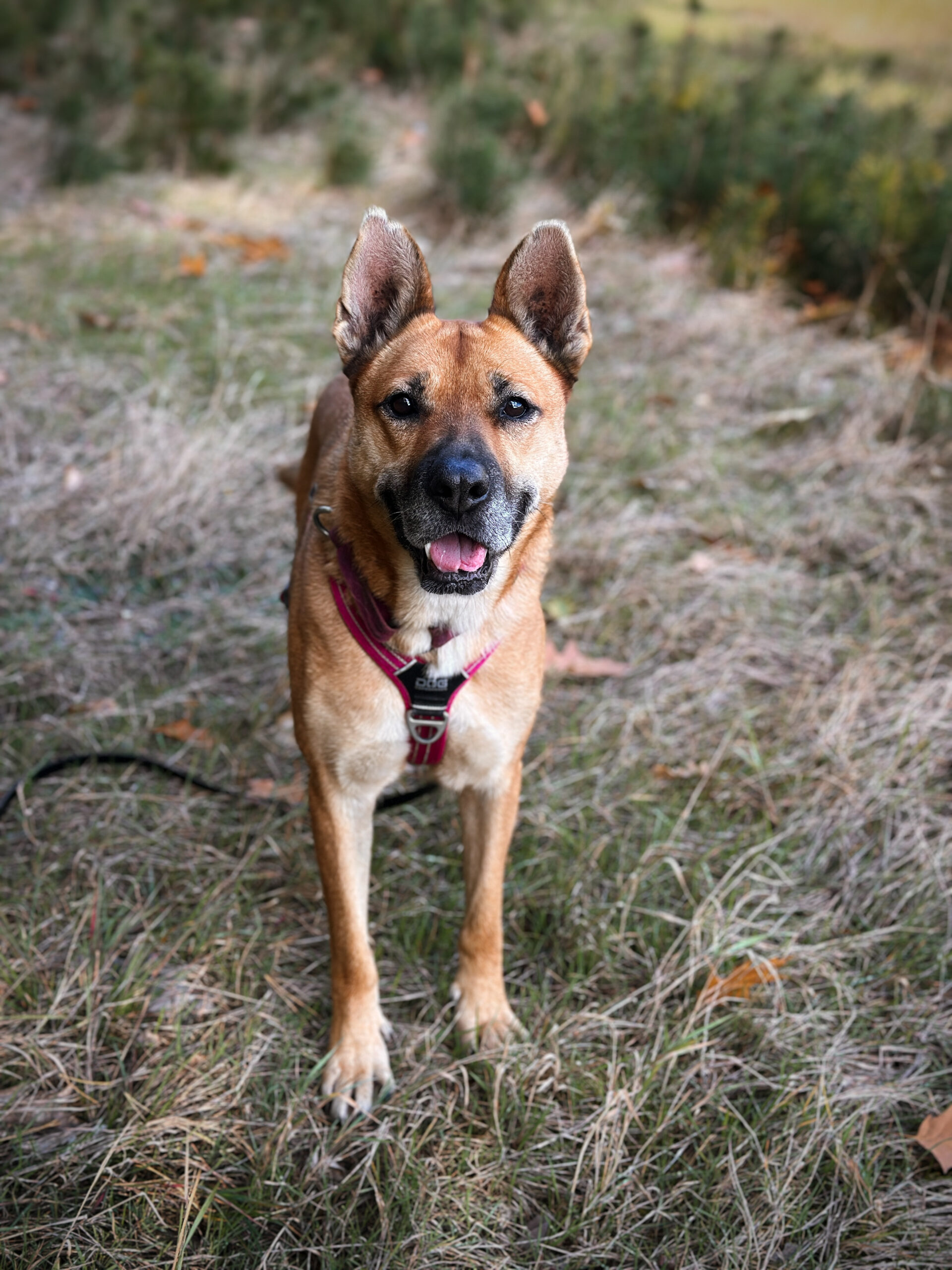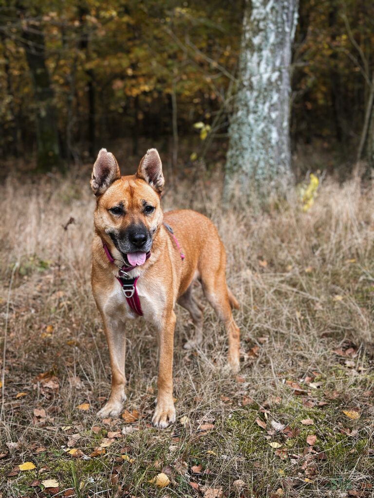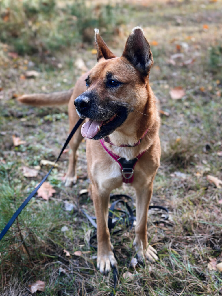 Obecnie Janeczka buduje relacje z ludźmi, wychodzi z wolontariuszami na spacery, wręcz kocha spacery! Jest wesołą, przekochaną sunią. Bardzo lubi kontakt z ludźmi. Pomimo sporej energii potrafi spokojnie spacerować na smyczy. Jest suczką pewną siebie, powoli poznajemy ją z innymi psami.