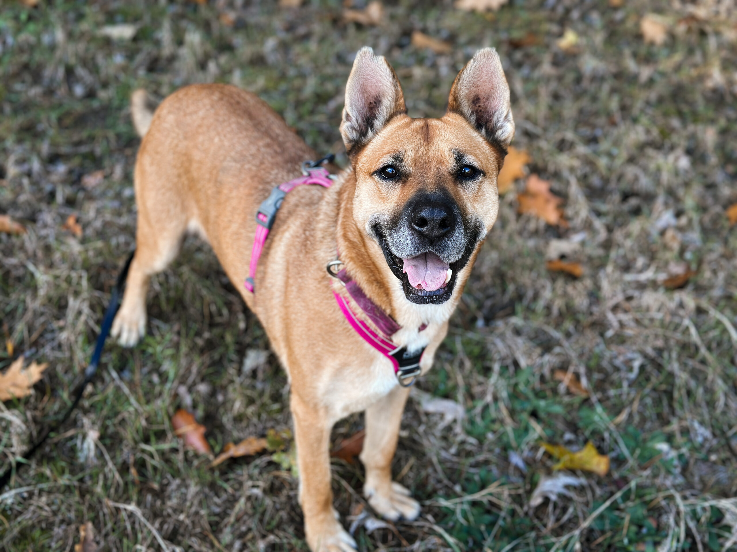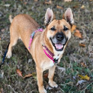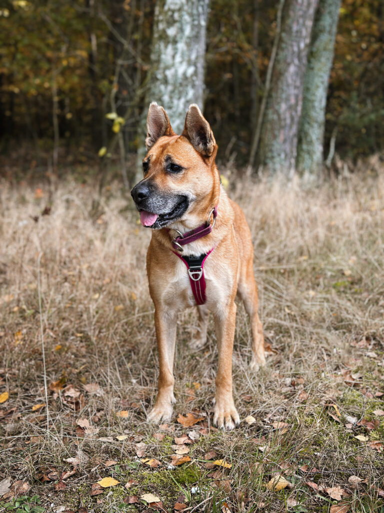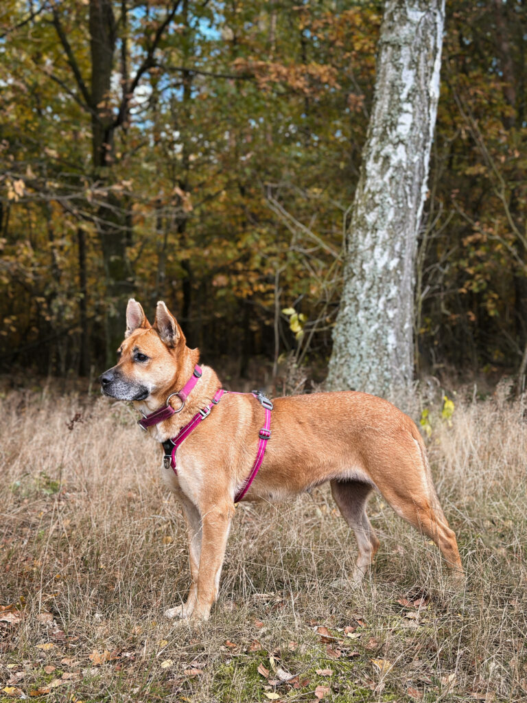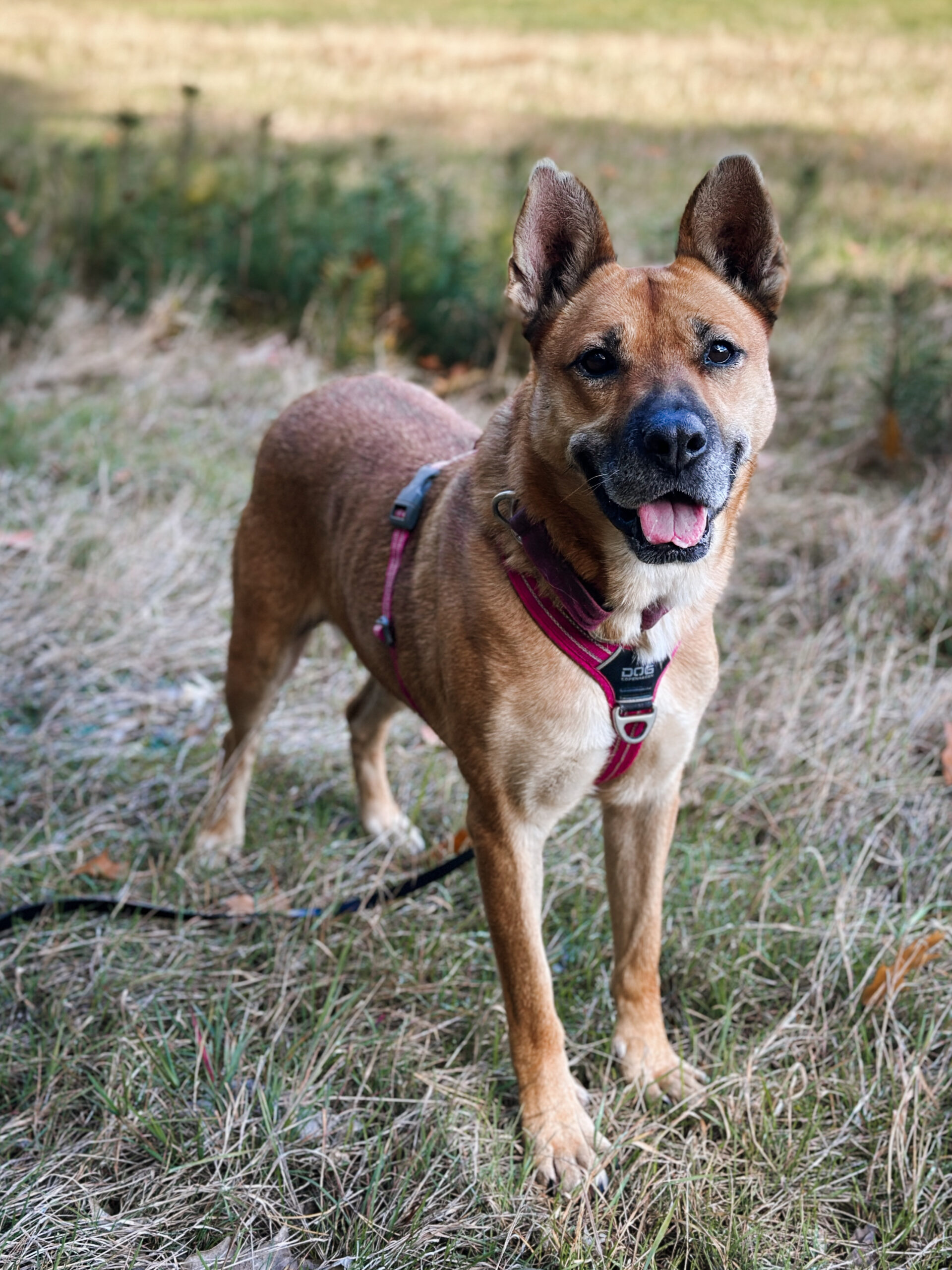 Obecnie Janeczka buduje relacje z ludźmi, wychodzi z wolontariuszami na spacery, wręcz kocha spacery! Jest wesołą, przekochaną sunią. Bardzo lubi kontakt z ludźmi. Pomimo sporej energii potrafi spokojnie spacerować na smyczy. Jest suczką pewną siebie, powoli poznajemy ją z innymi psami.