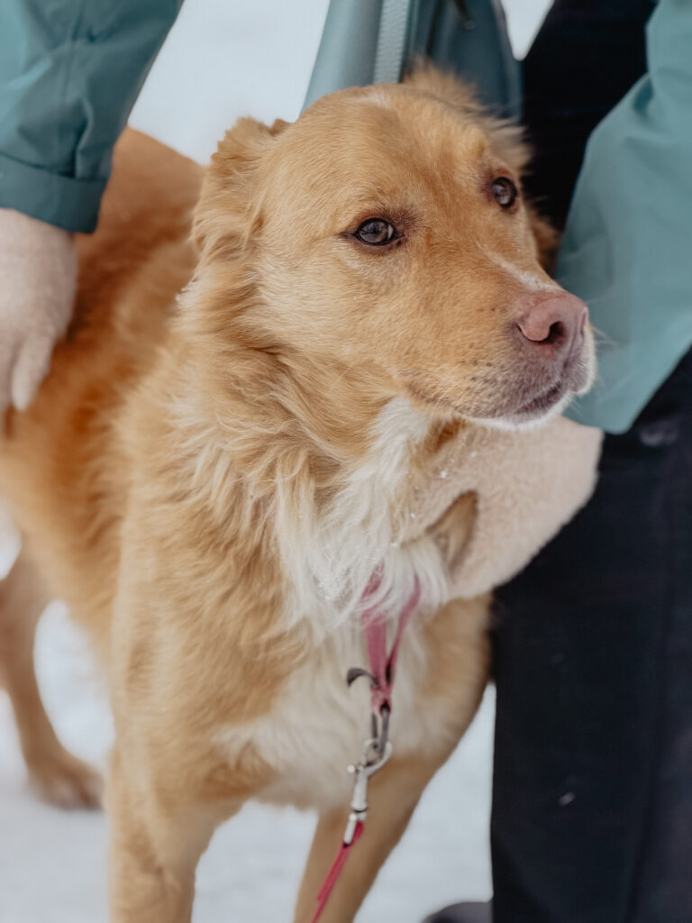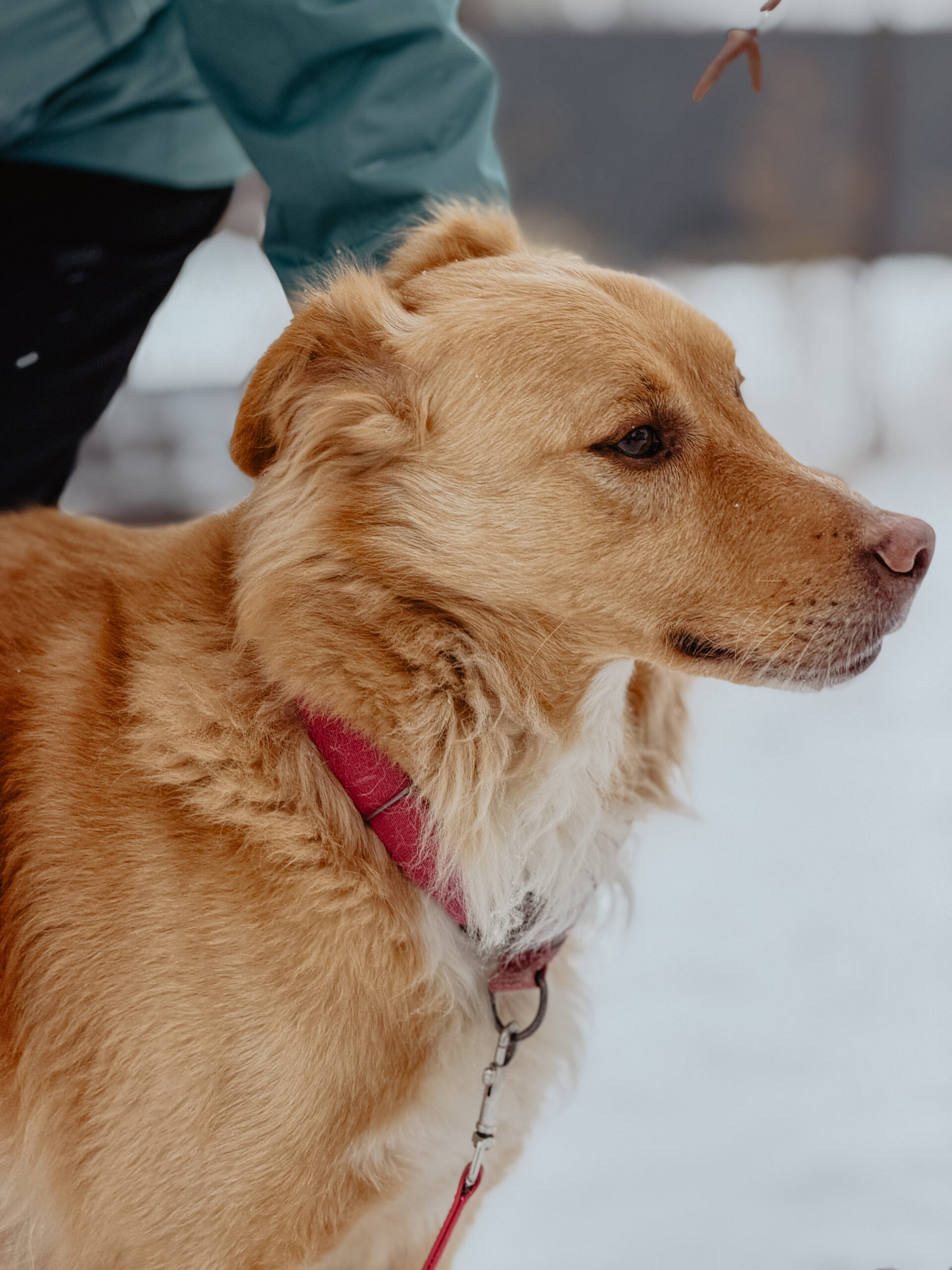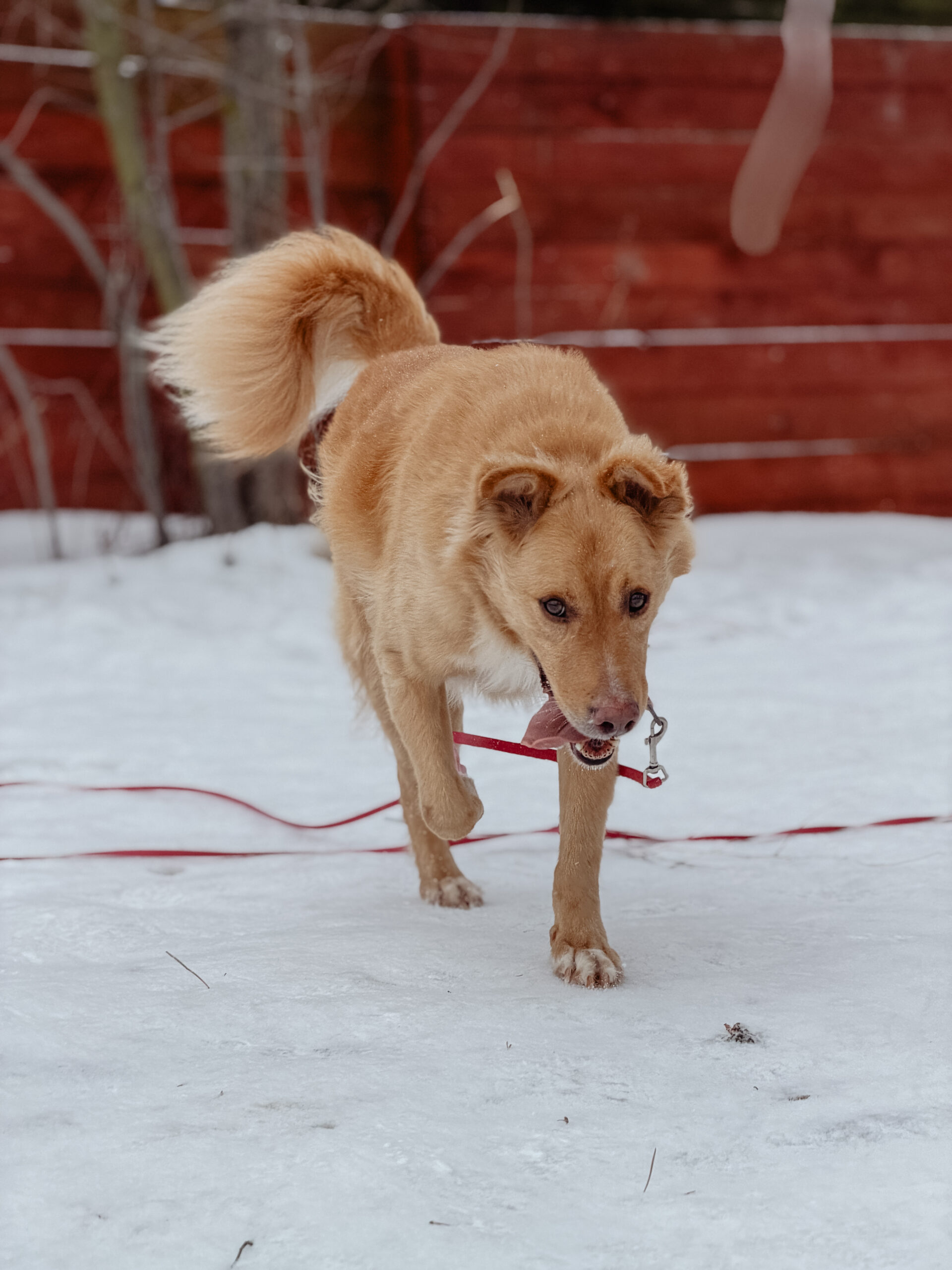 Blue jest bardzo fajny w relacjach z ludźmi i szuka z nimi kontaktu. Spacery to dla niego ogromna radość – wciąż jest trochę oszołomiony nowymi bodźcami, przestrzenią, ale z ciekawością eksploruje świat i zajmuje się węszeniem. Potrafi chodzić na smyczy.