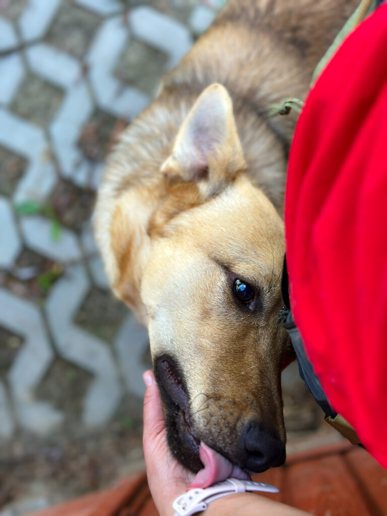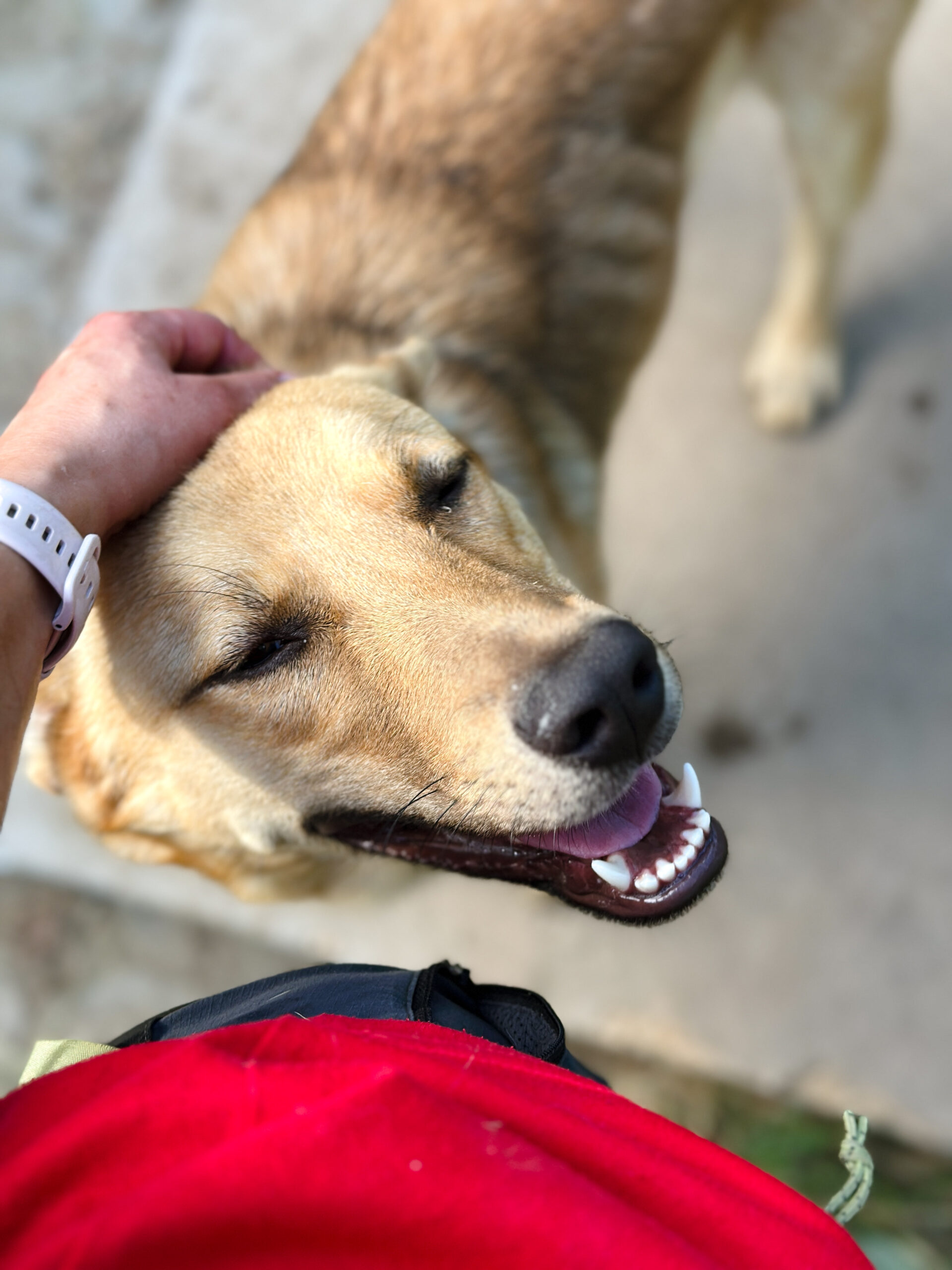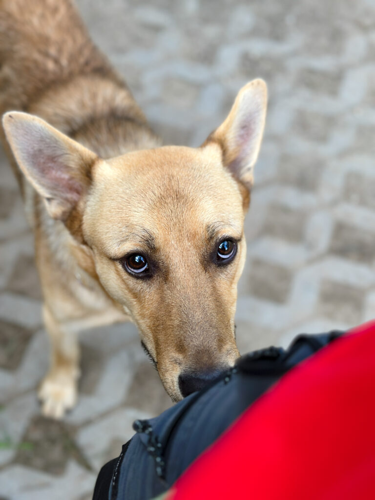 Kruchy to łagodny i bardzo przyjacielski pies. Na spacerze bardzo ładnie zajmuje się pieskimi sprawami, nie ciagnie smyczy.