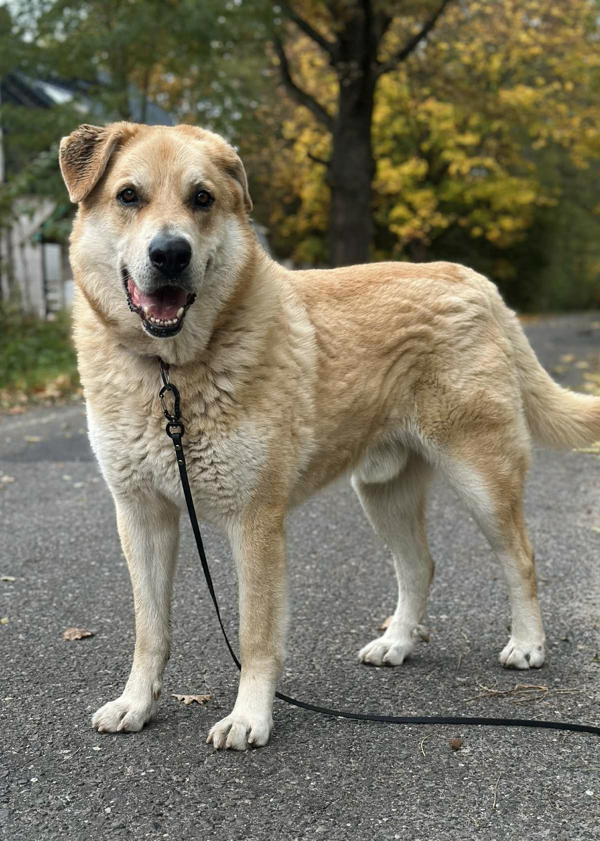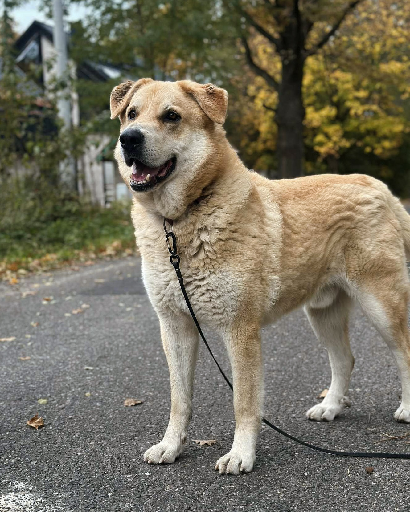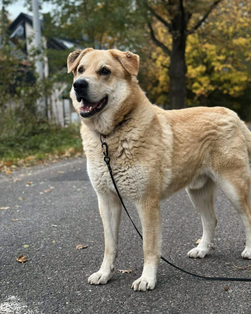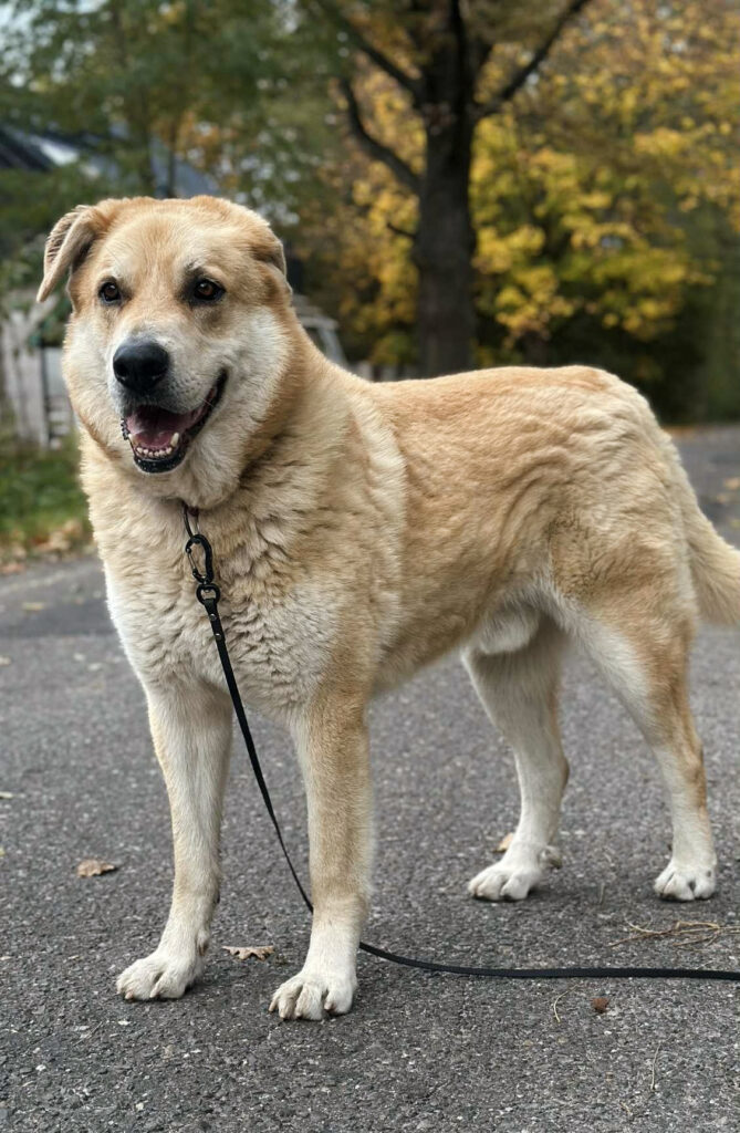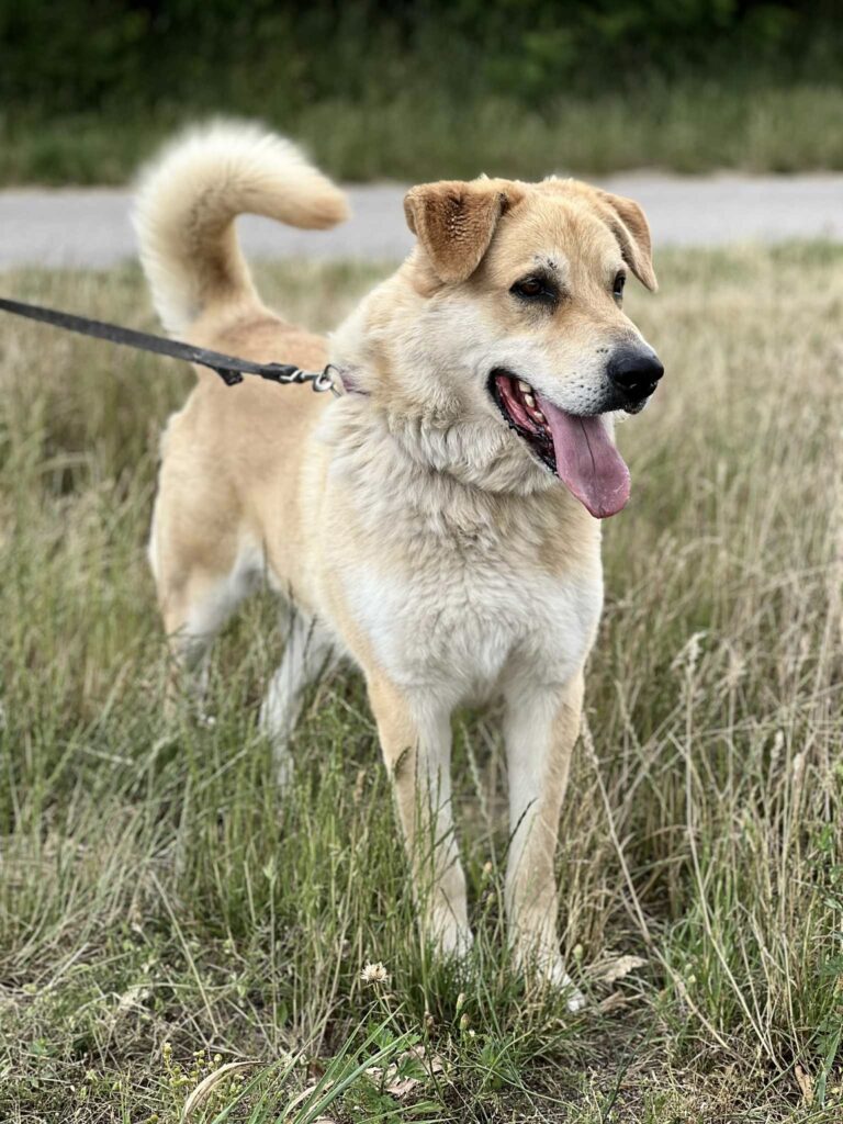 Jest sporym psem o ładnej, jasnej szacie. Pewny siebie, dumny, a przy tym zrównoważony. Ładnie chodzi na lince. Spacery z nim to czysta przyjemność.
