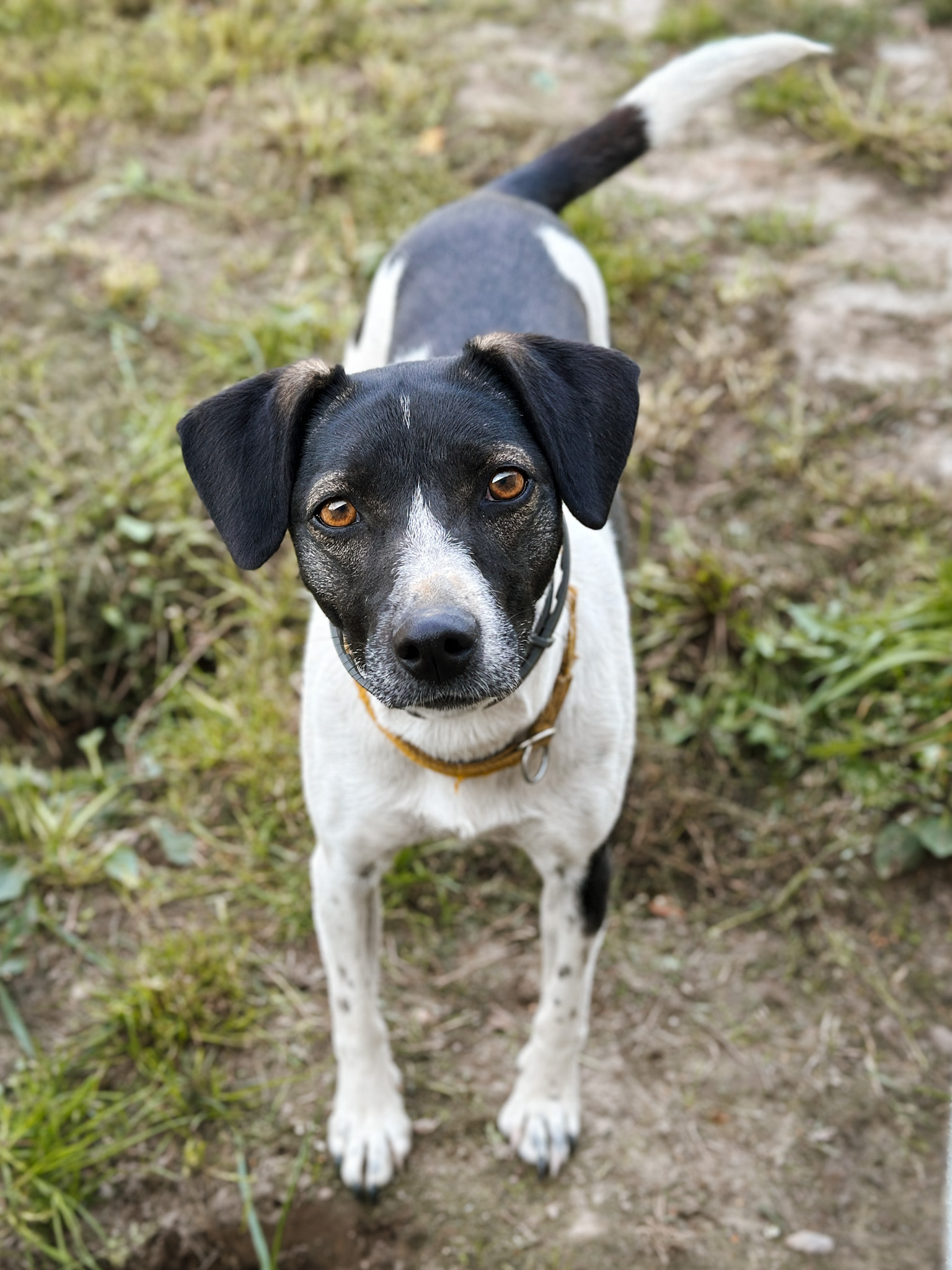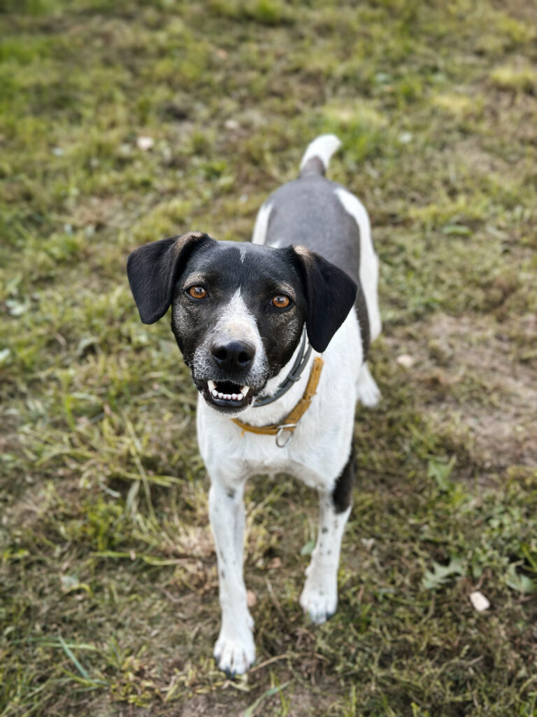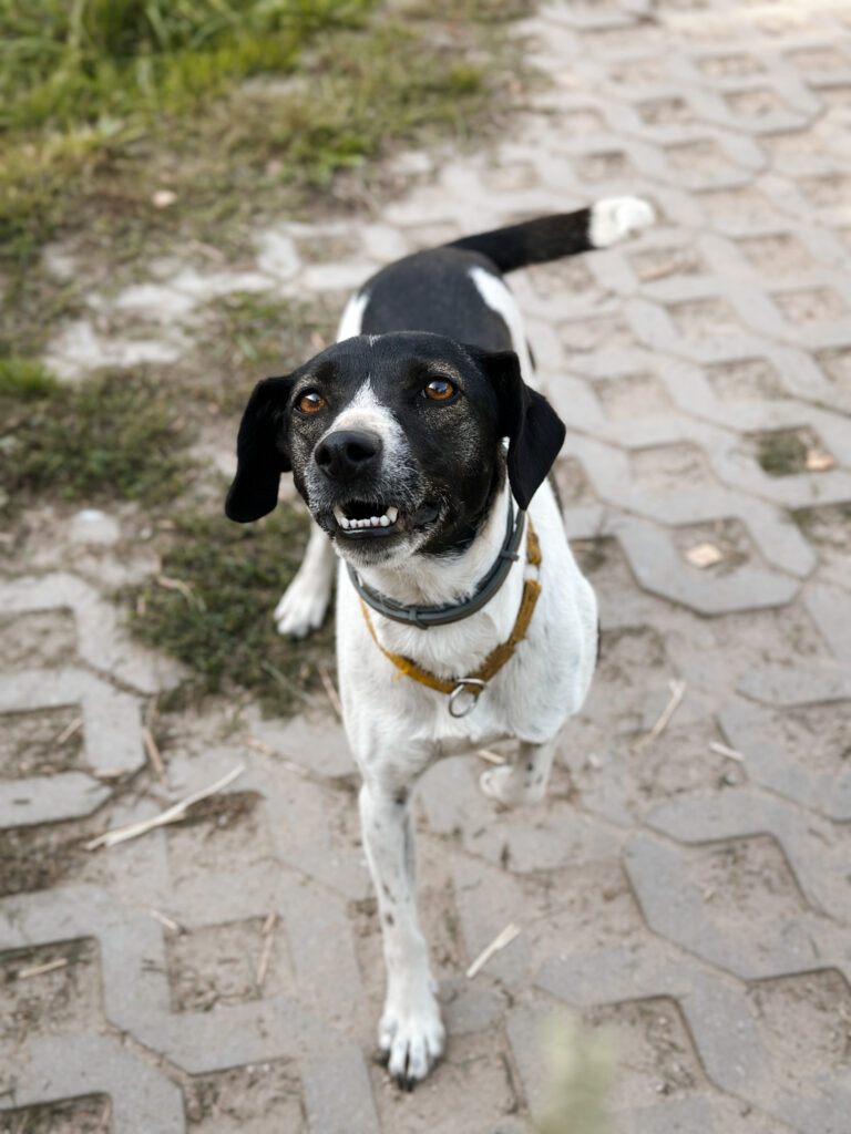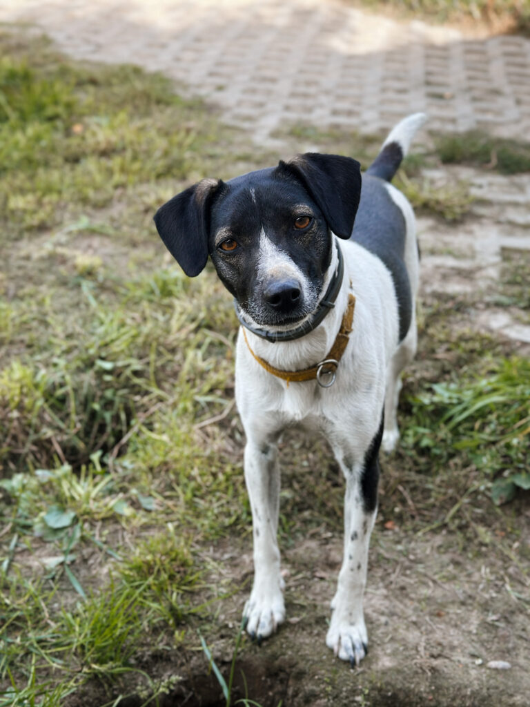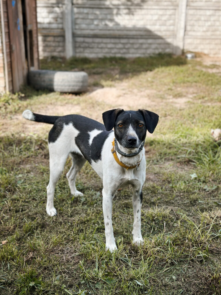 Łatka to młoda i delikatna sunia o pięknym “łaciatym umaszczeniu”. Na początku była wystraszona i zagubiona, powoli staje się coraz bardziej pewna siebie. Potrzebuje cierpliwości i czasu, aby zaufać człowiekowi, co nie przeszkadza jej w robieniu dużych postępów.