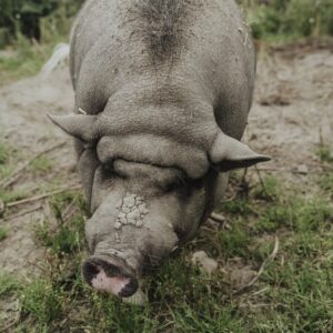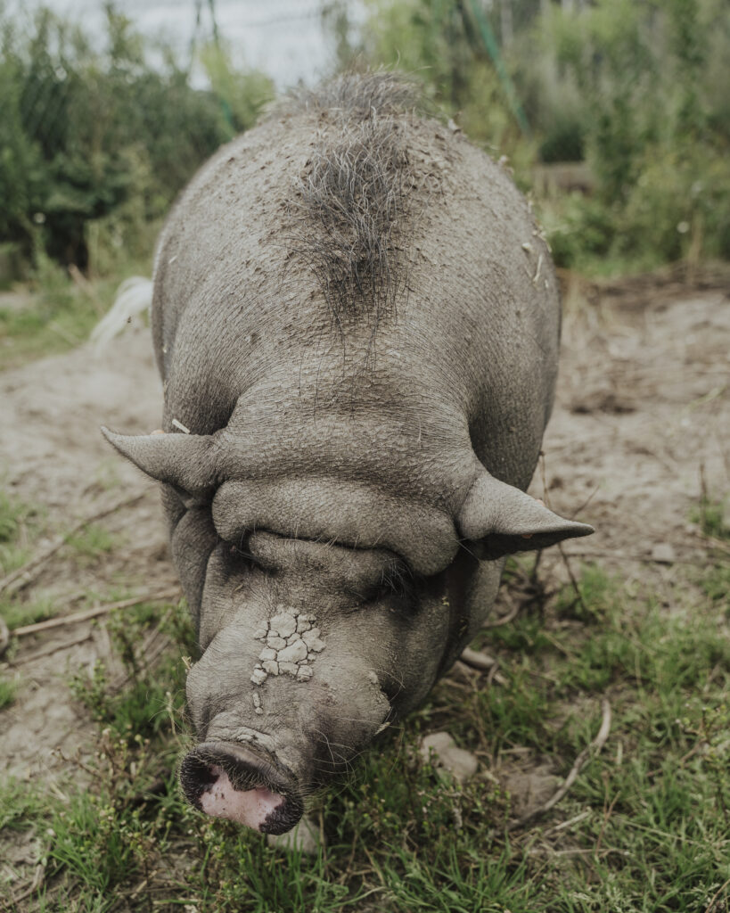 Jedna z dwóch schroniskowych miniaturowych świń zwisłobrzuchych.
