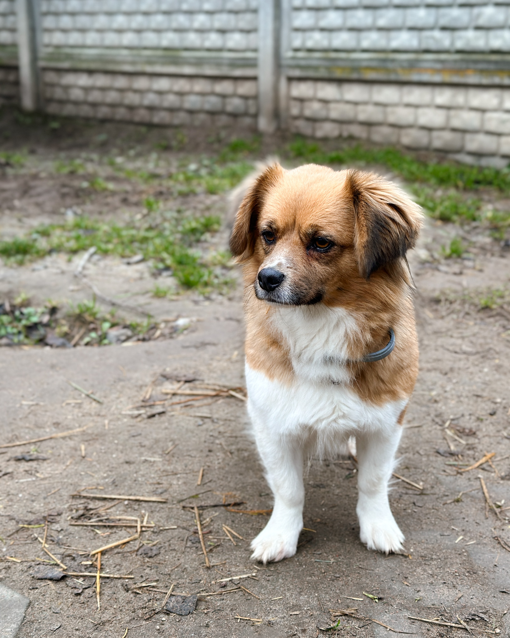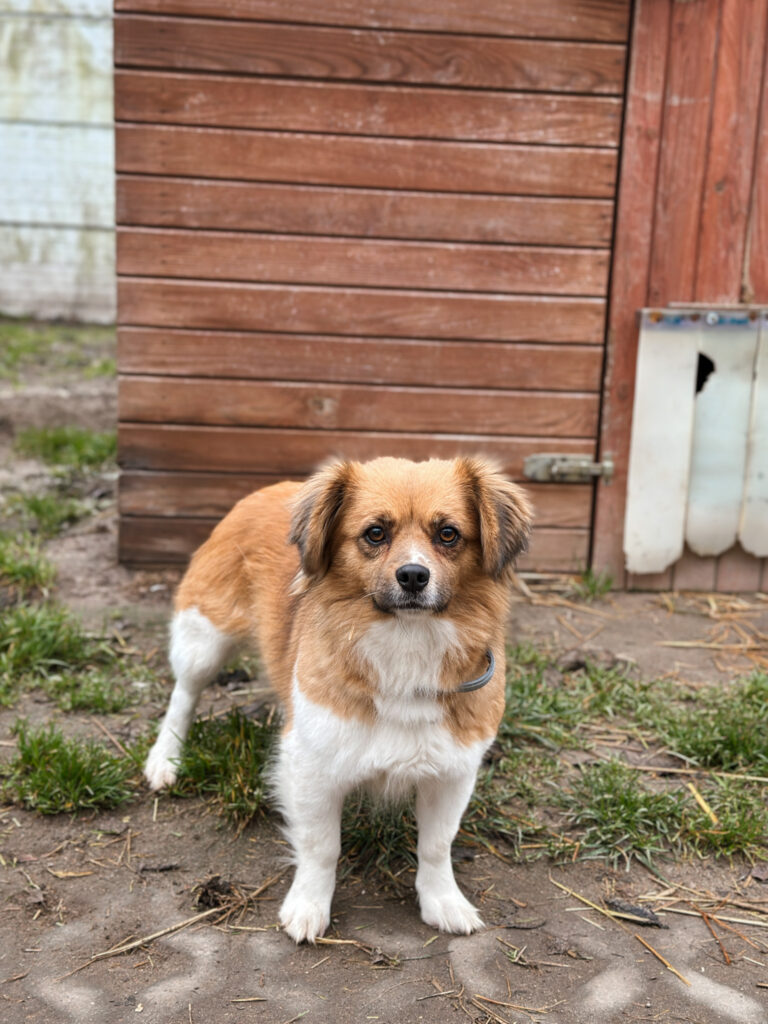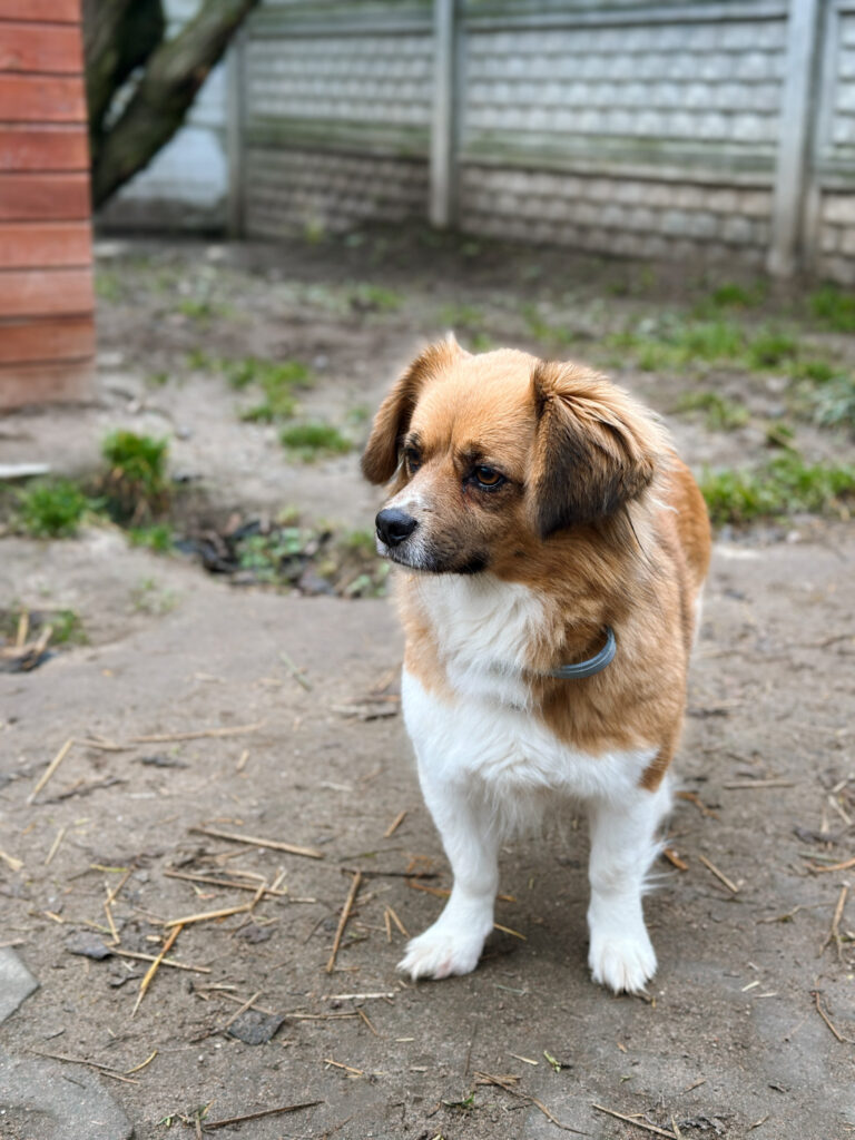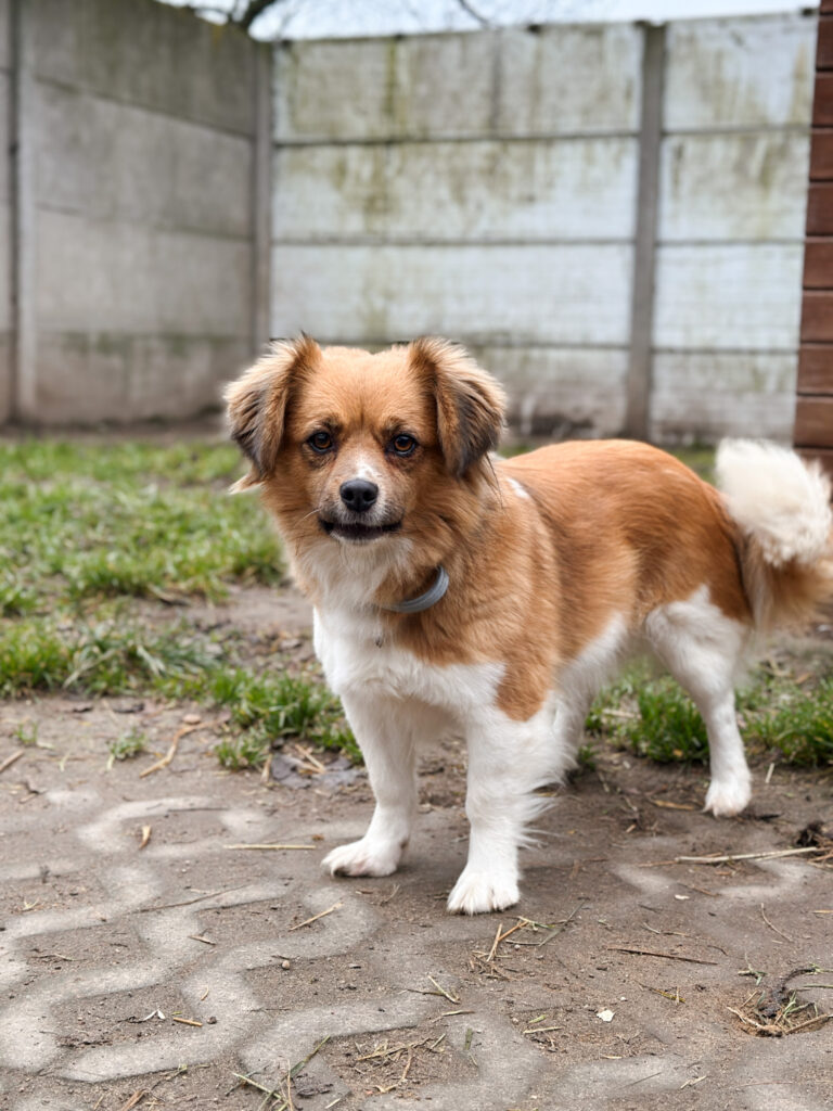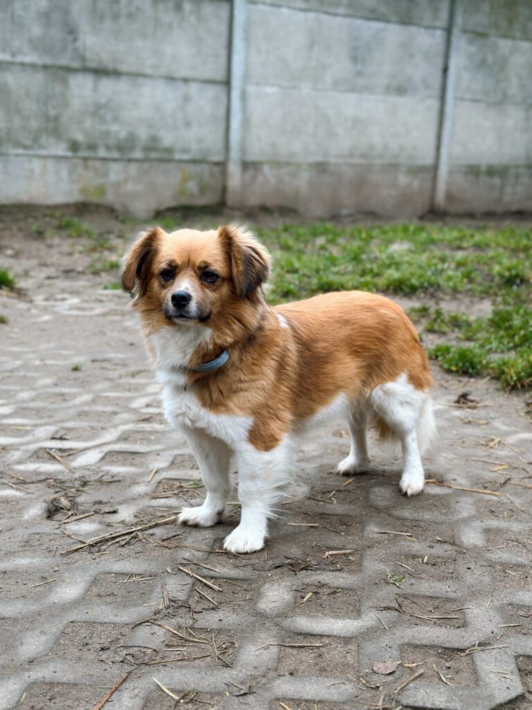 Monia to niewielka, młoda sunia. Jest ciekawska, wesoła i lubi towarzystwo człowieka. Pozwala się głaskać, dotyk sprawia jej przyjemność. Szybko przywiązuje się do opiekuna.