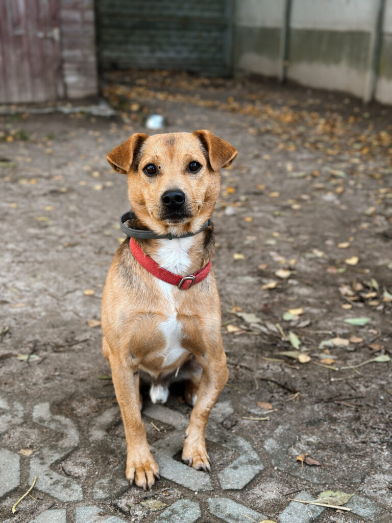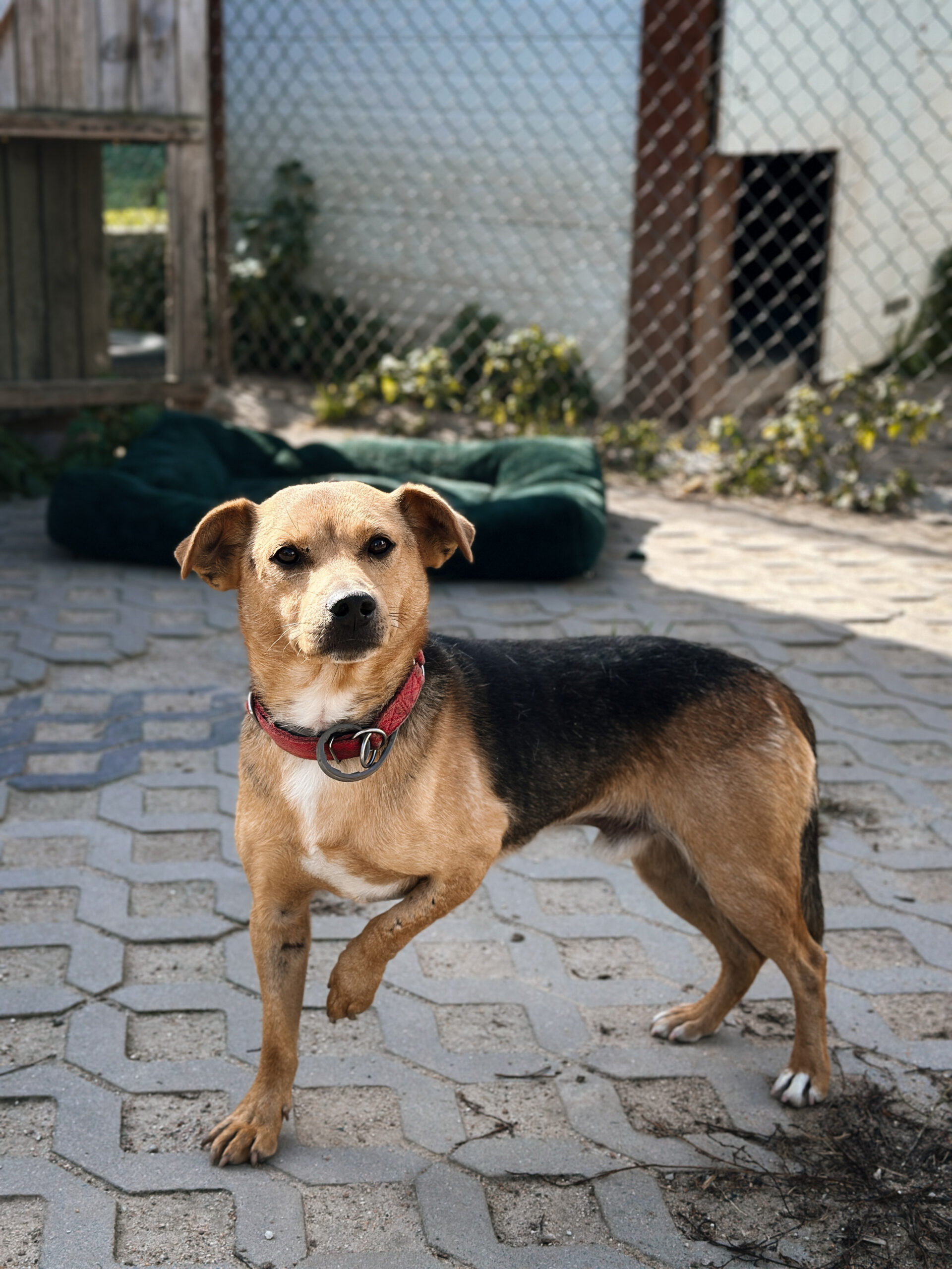 Na początku bywa ostrożny i nieufny wobec obcych, ale gdy da mu się chwilę, szybko otwiera się i okazuje radość. To pies, który całym sobą pragnie bliskości człowieka – widać, że tego najbardziej mu brakowało.