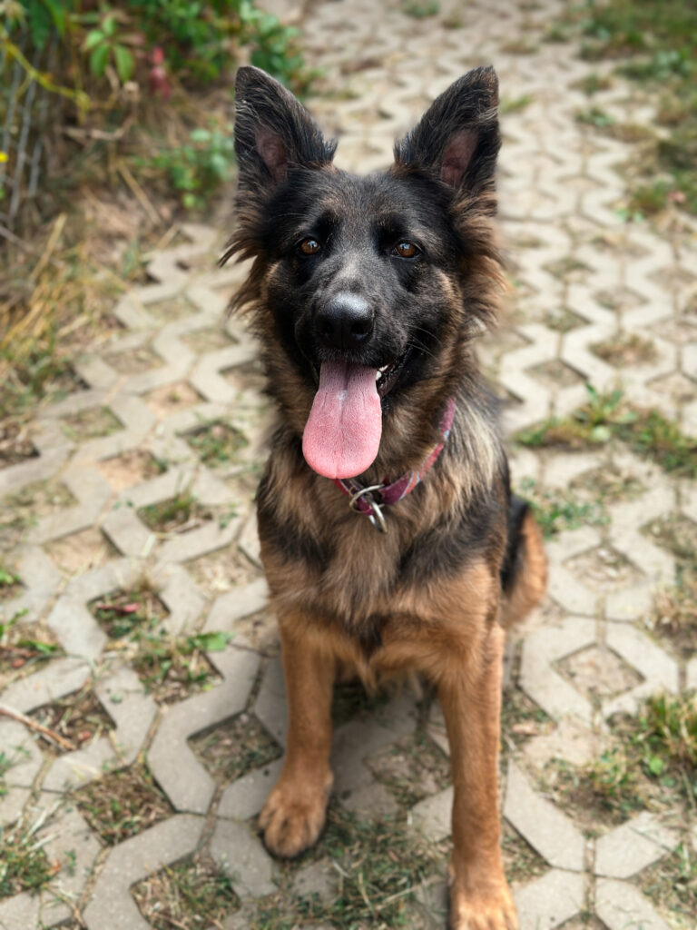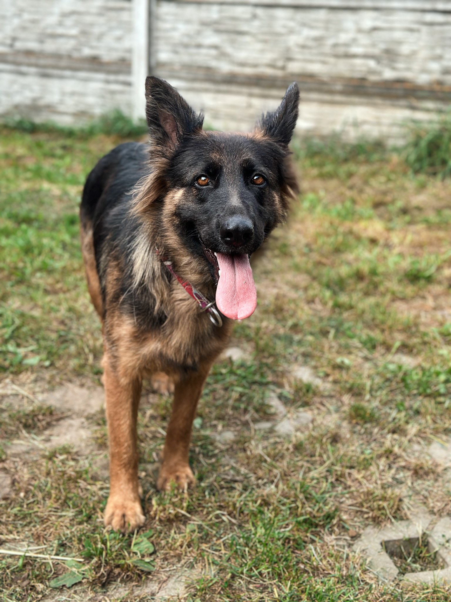 Runa to piękna, młoda suczka w typie owczarka niemieckiego. Lgnie do człowieka, jest łagodna i bardzo towarzyska.