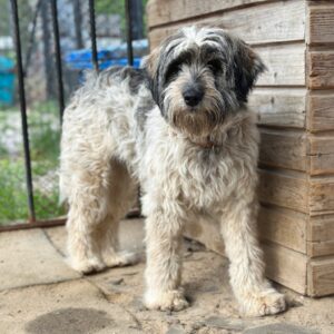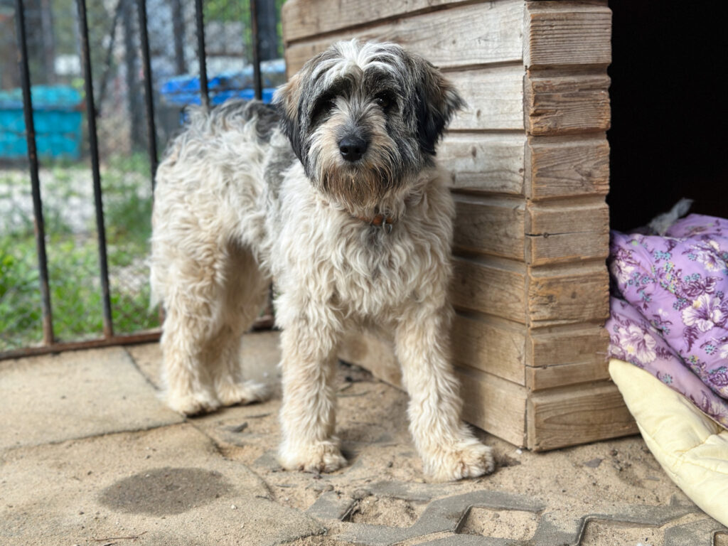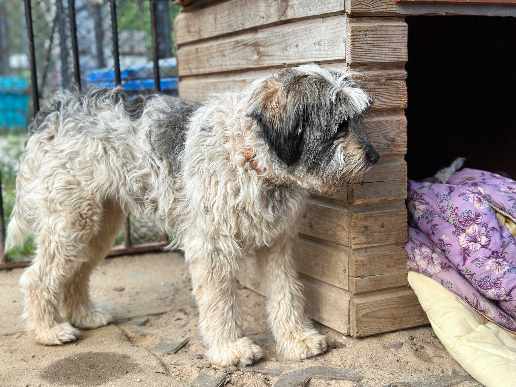 Sunia trafiła do schroniska wraz z siostrą Sasanką. Obie były skrajnie zaniedbane. Ich sierść to był jeden wielki kołtun, musiały zostać ostrzyżone. Póki co jest przestraszona całą sytuacją.