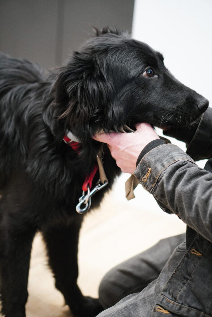 Nadrabia braki w socjalizacji. Jest psim dzieciakiem, podrostkiem, który niewiele w życiu zaznał. Chciałby do wszystkiego pobiec, dotknąć nosem, polizać. Bywa namolny.